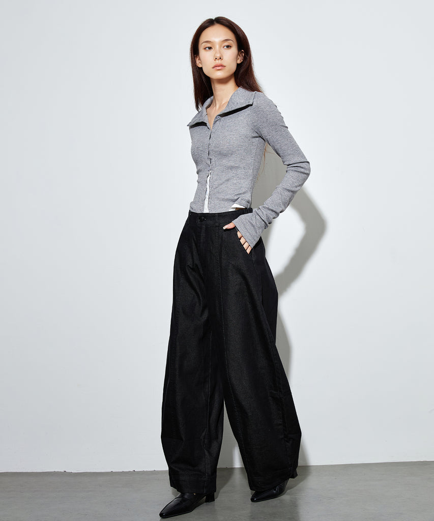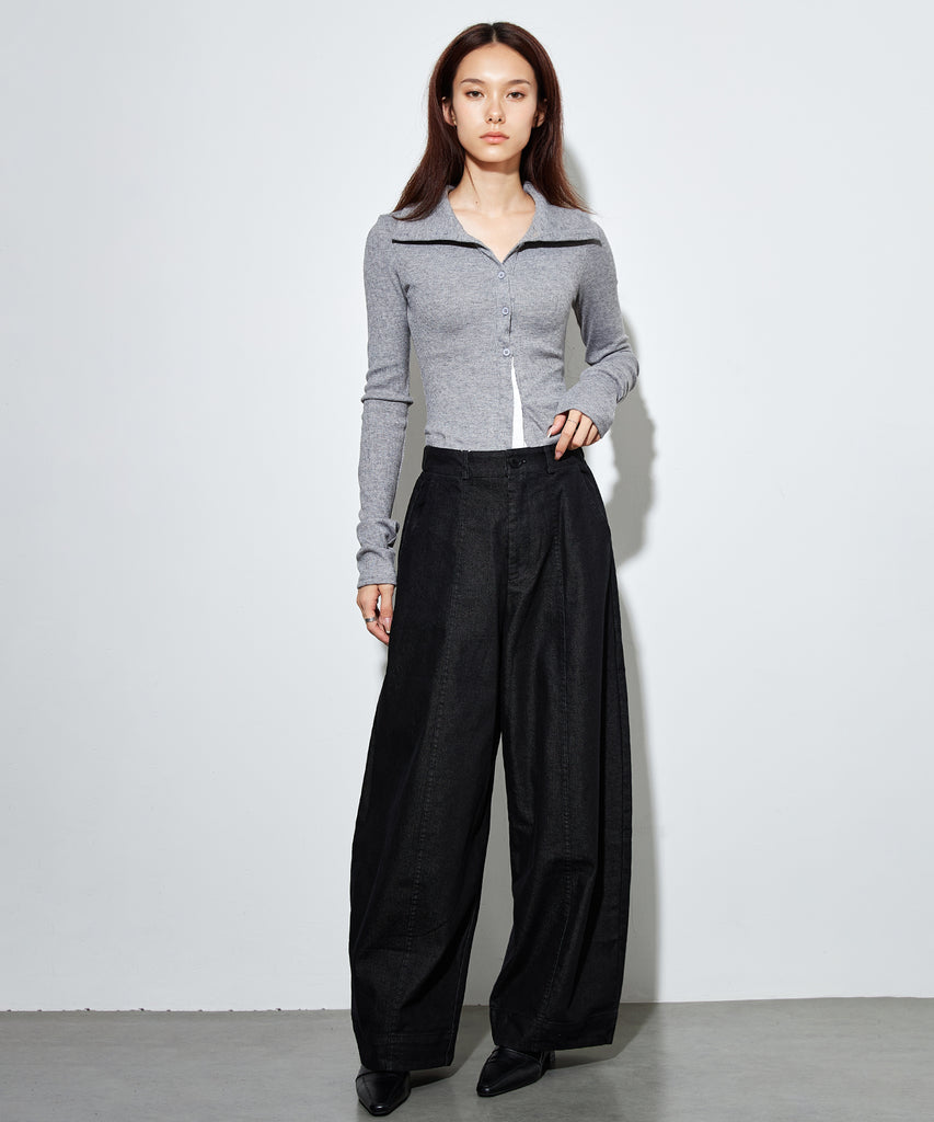 タック使いや切り替えラインによって適度な立体感が生まれ、ボリュームがありながらも平坦にならないこだわりの設計です。