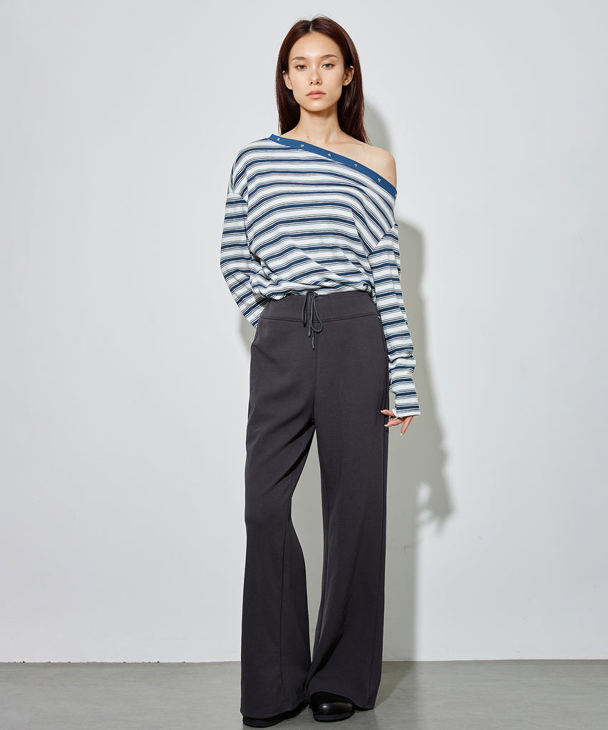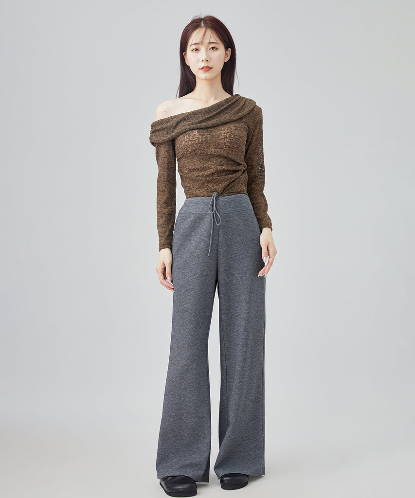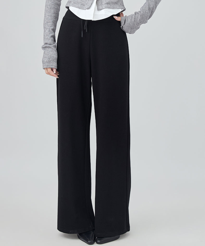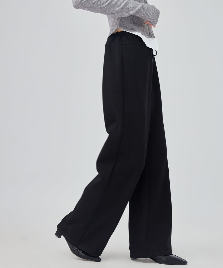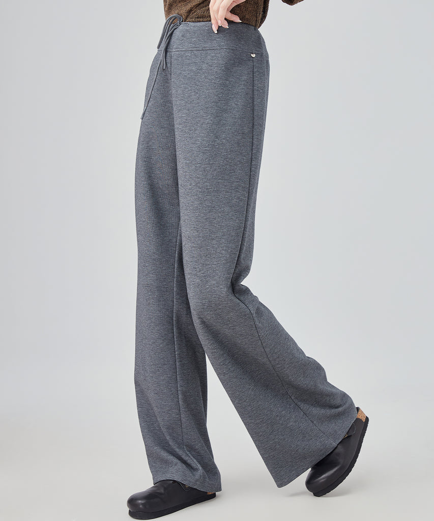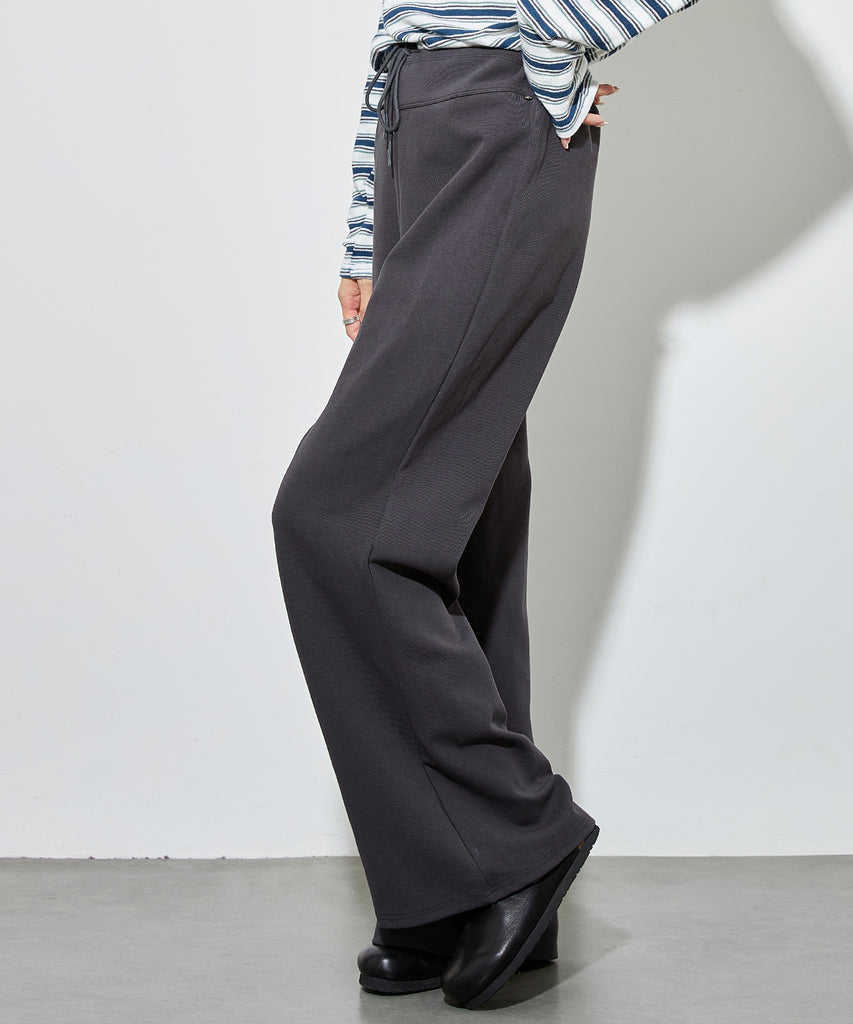 細身のストレートシルエットが女性らしいスウェットパンツ。