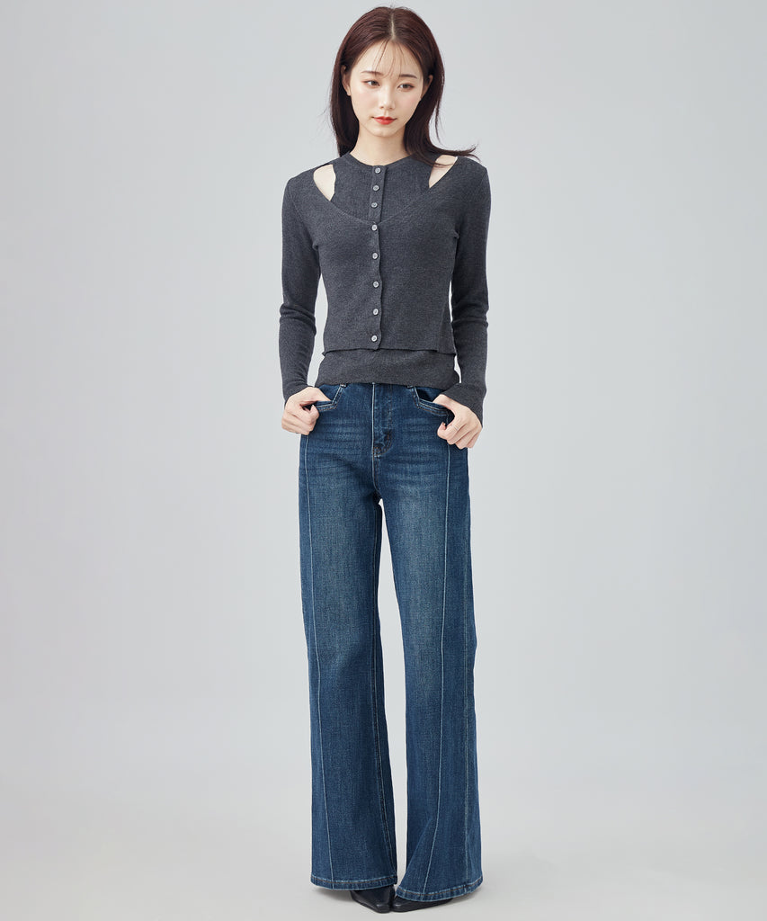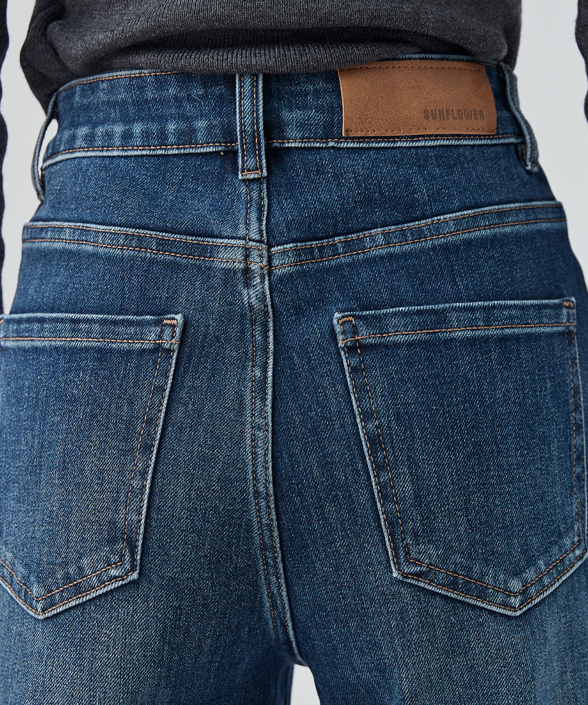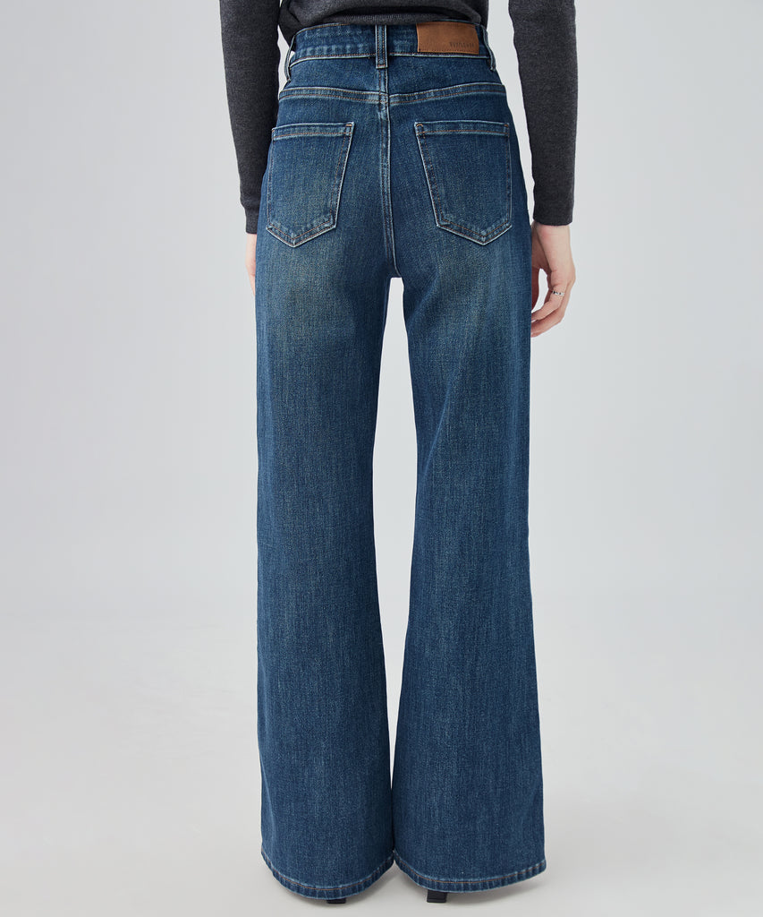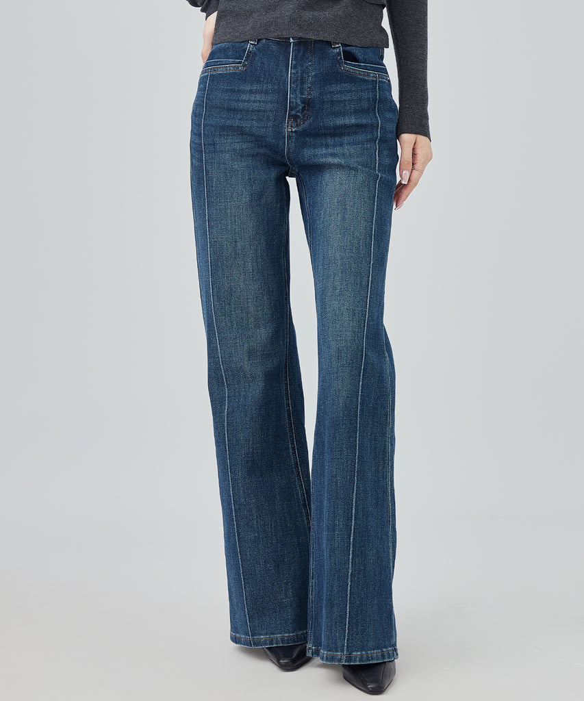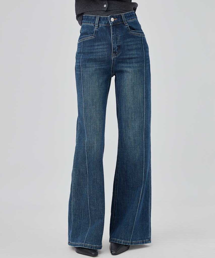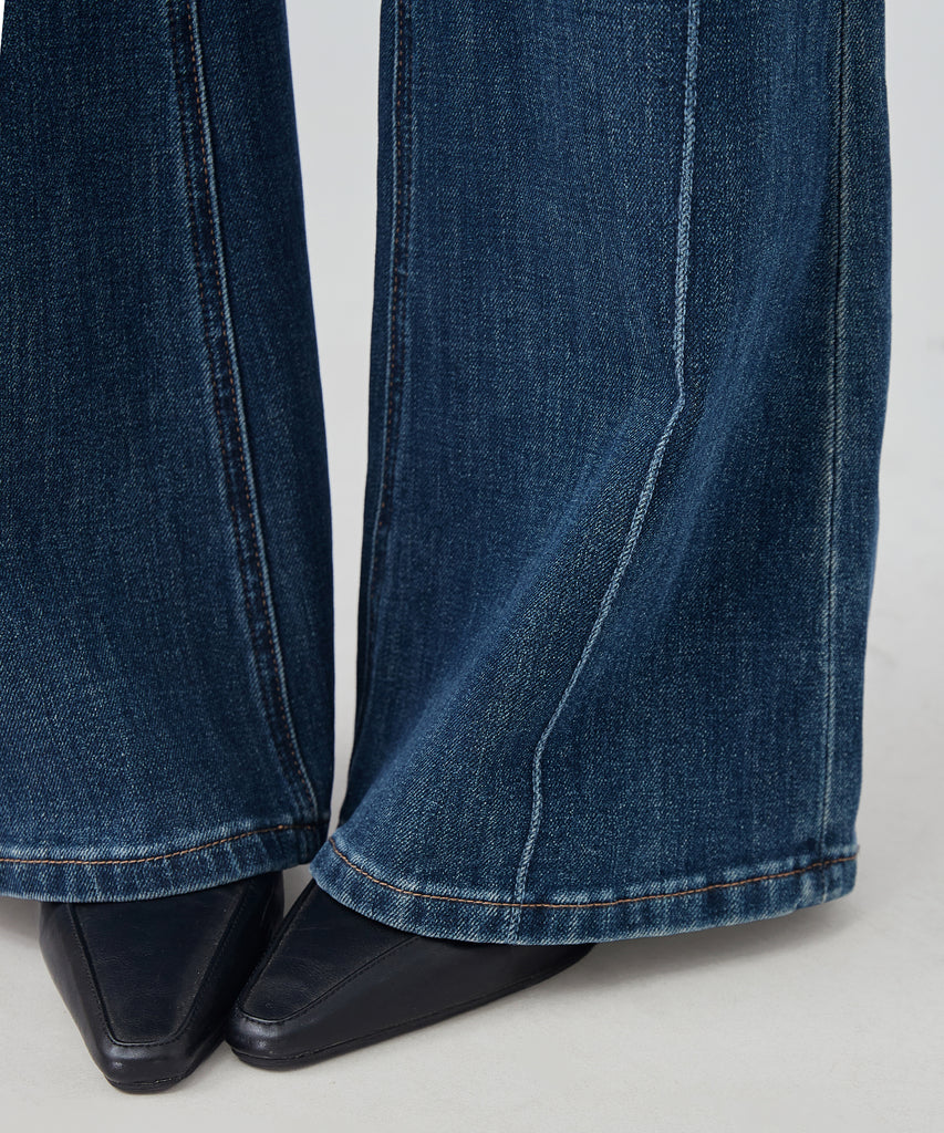washed seam flare denim pants