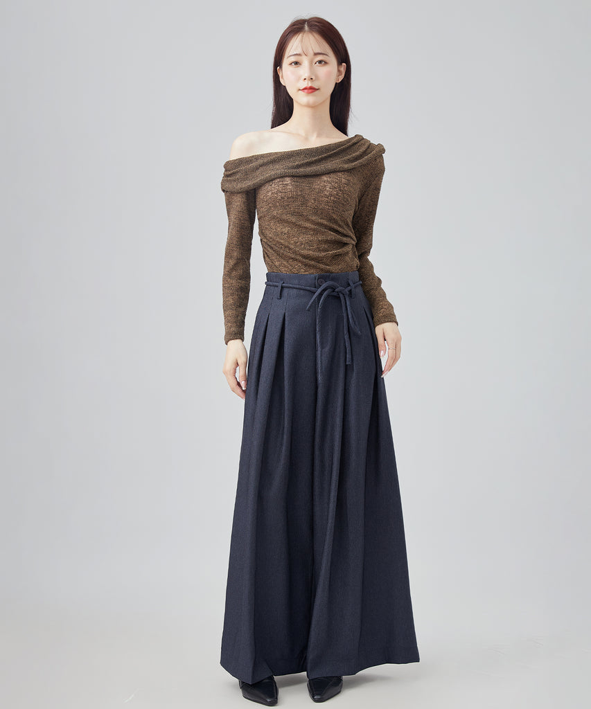 inverted pleats wide pants