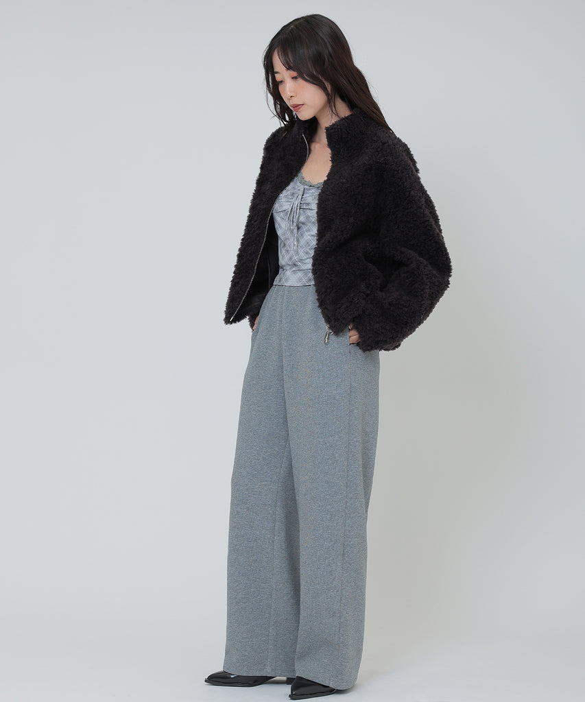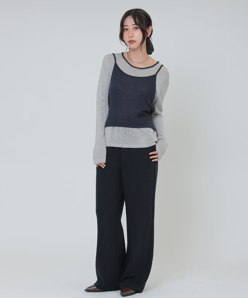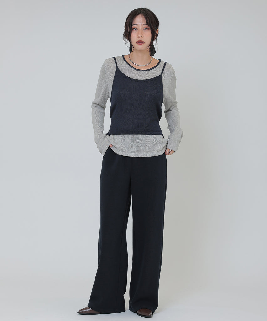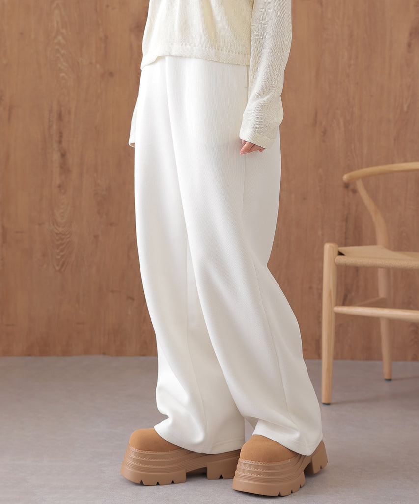 やや肉厚の素材は体型を拾いにくく、レッグラインが美しく見えるセミワイドシルエットに仕上げました。