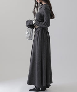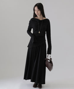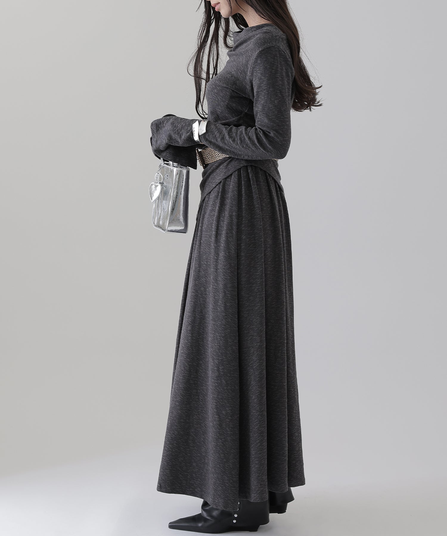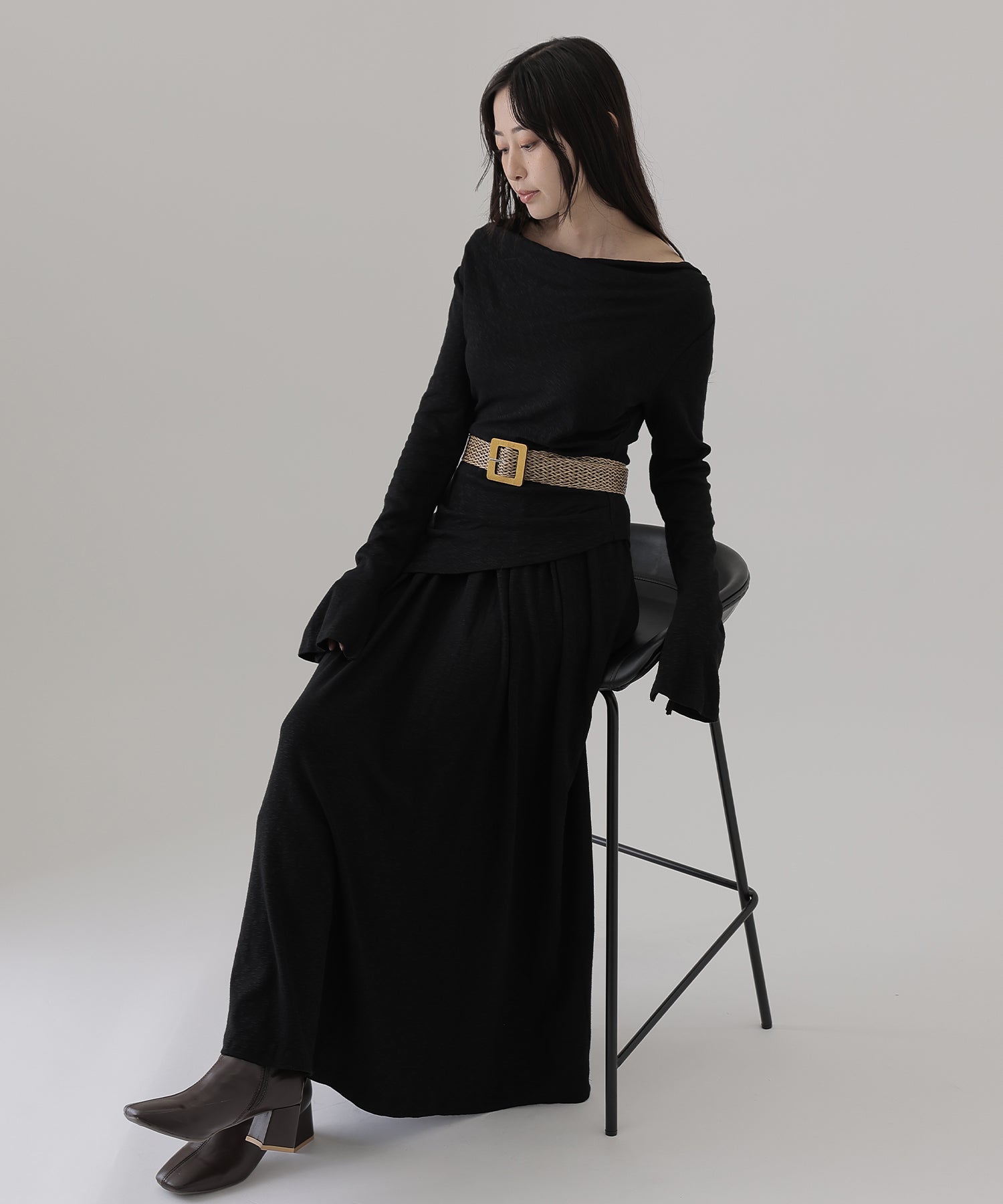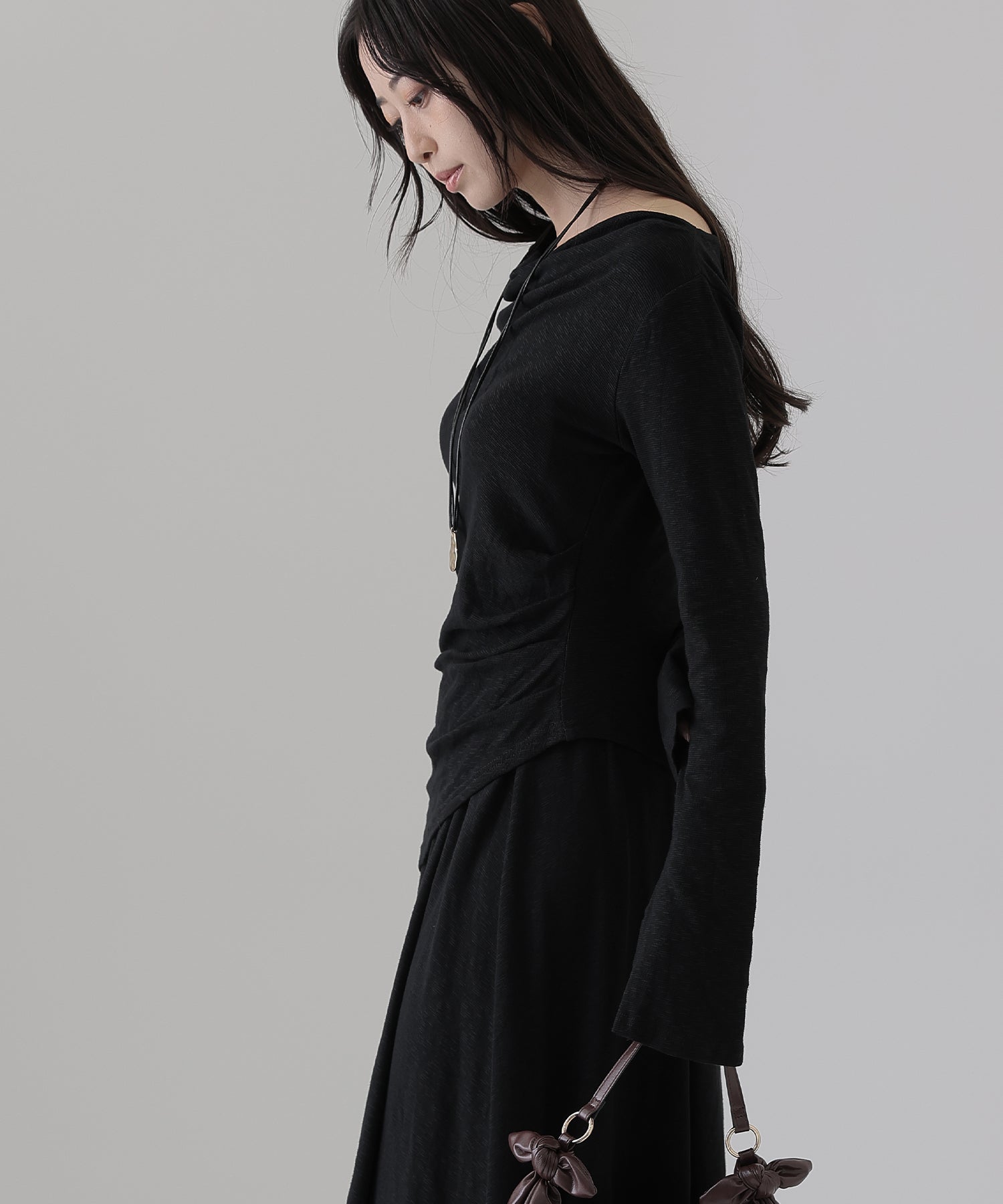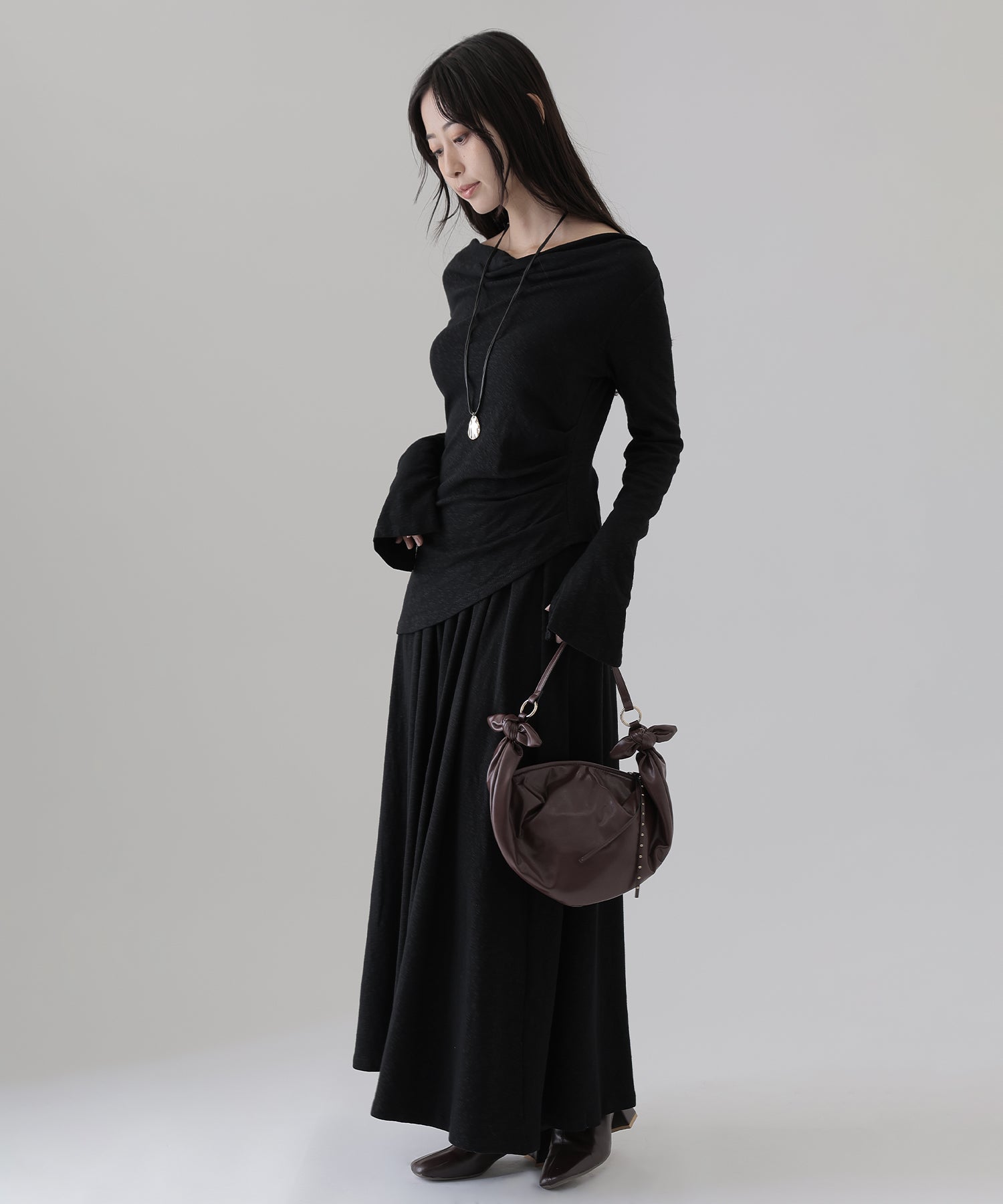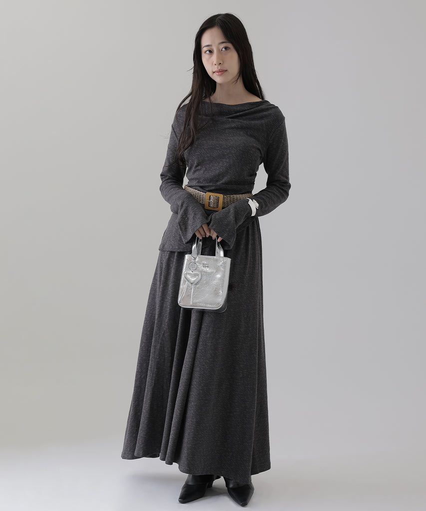 アシンメトリーなヘムラインも相まって、ニュアンスたっぷりの表情に。