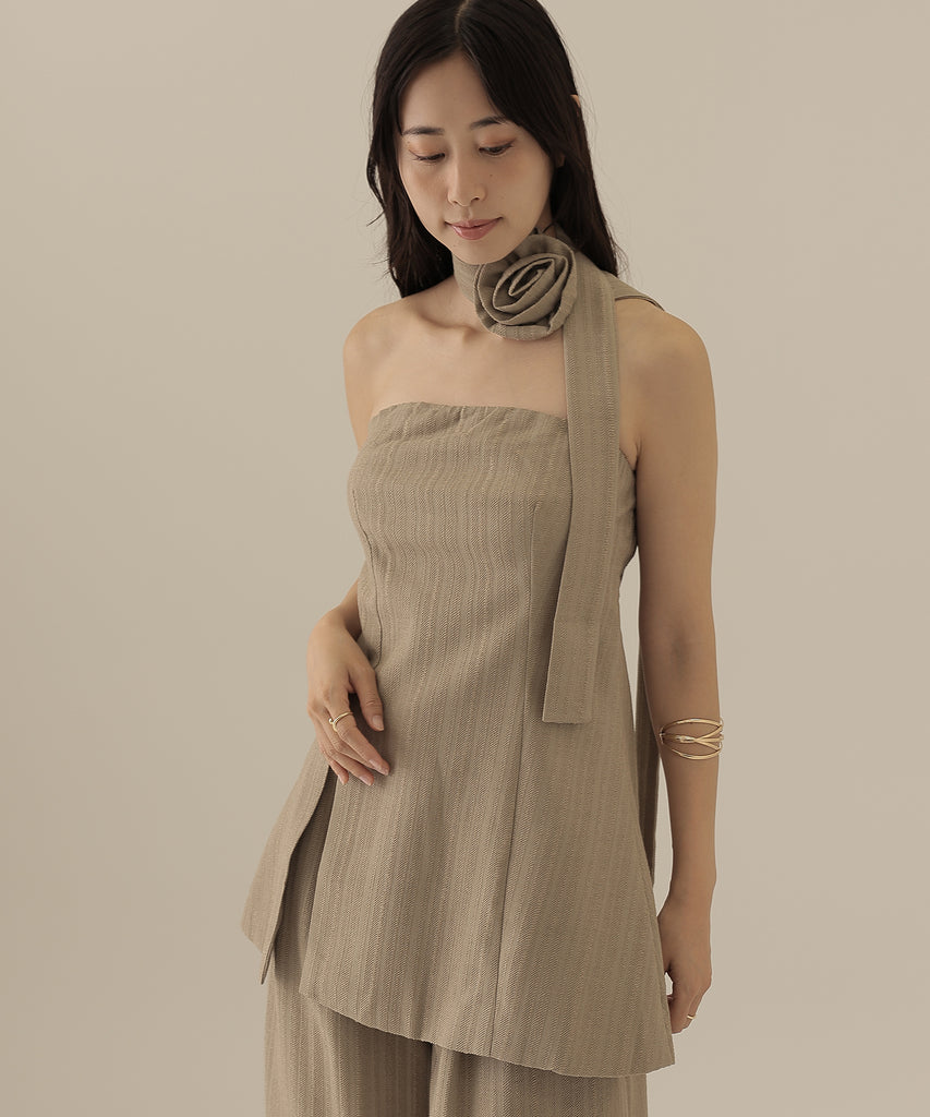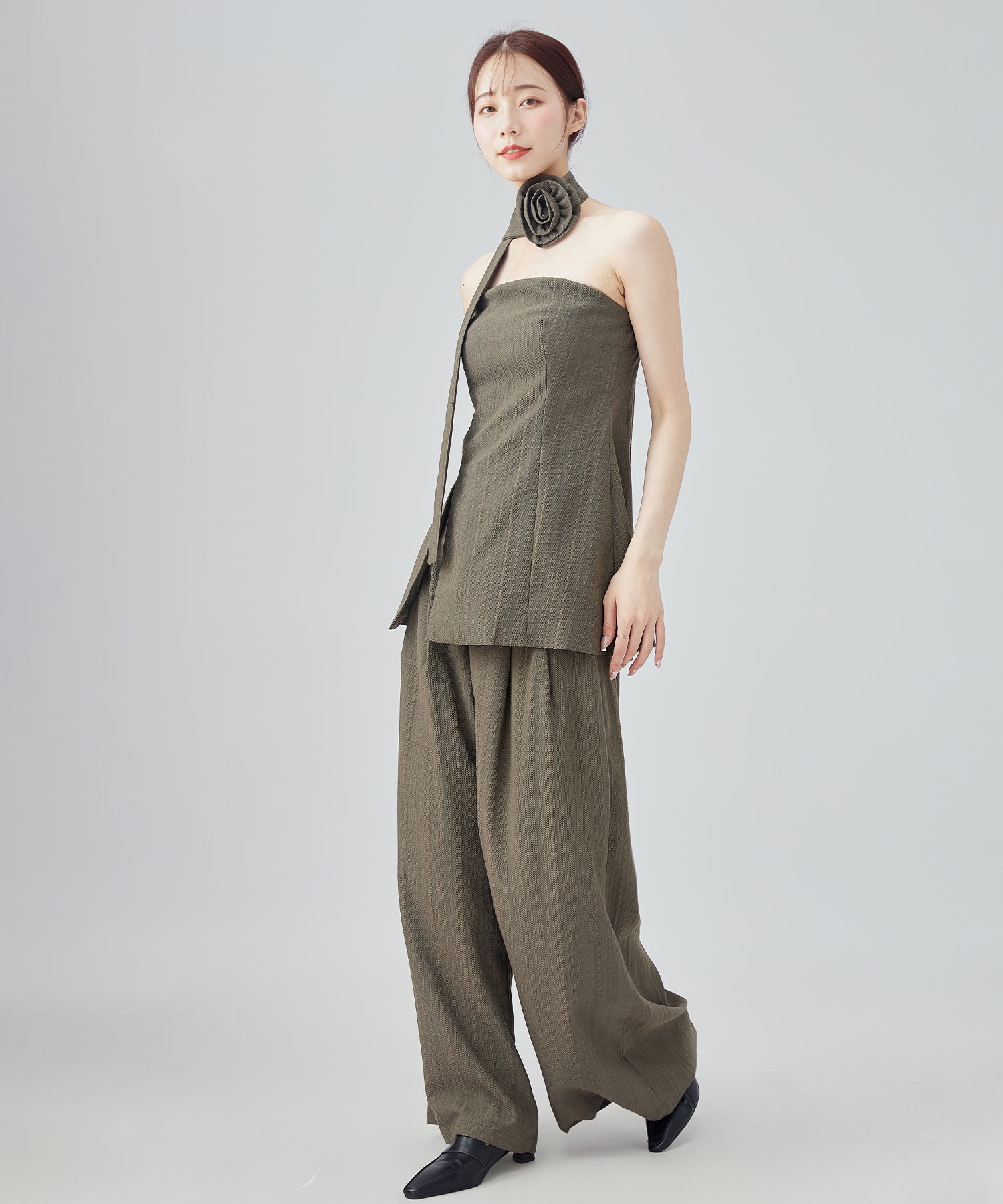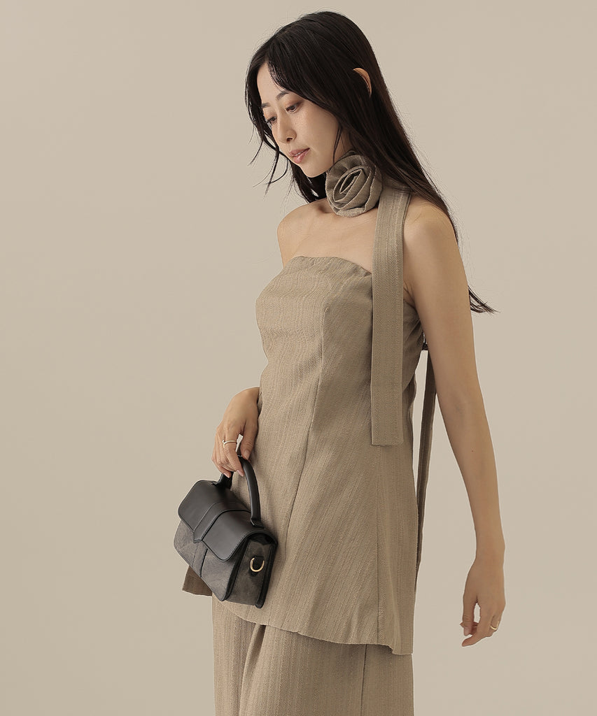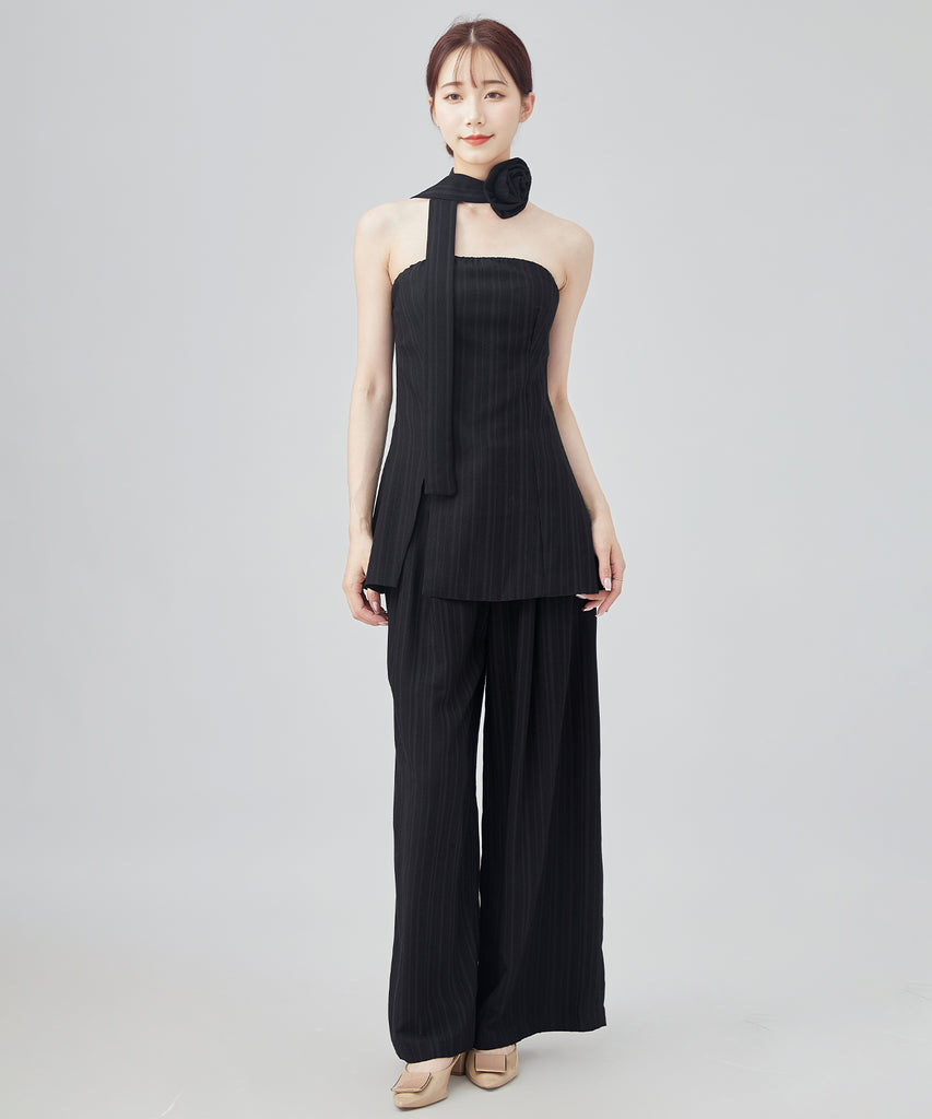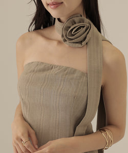 大きなコサージュが付いたチョーカーをセットにして、スタイリッシュ且つ着映えるアイテムに仕上げました。