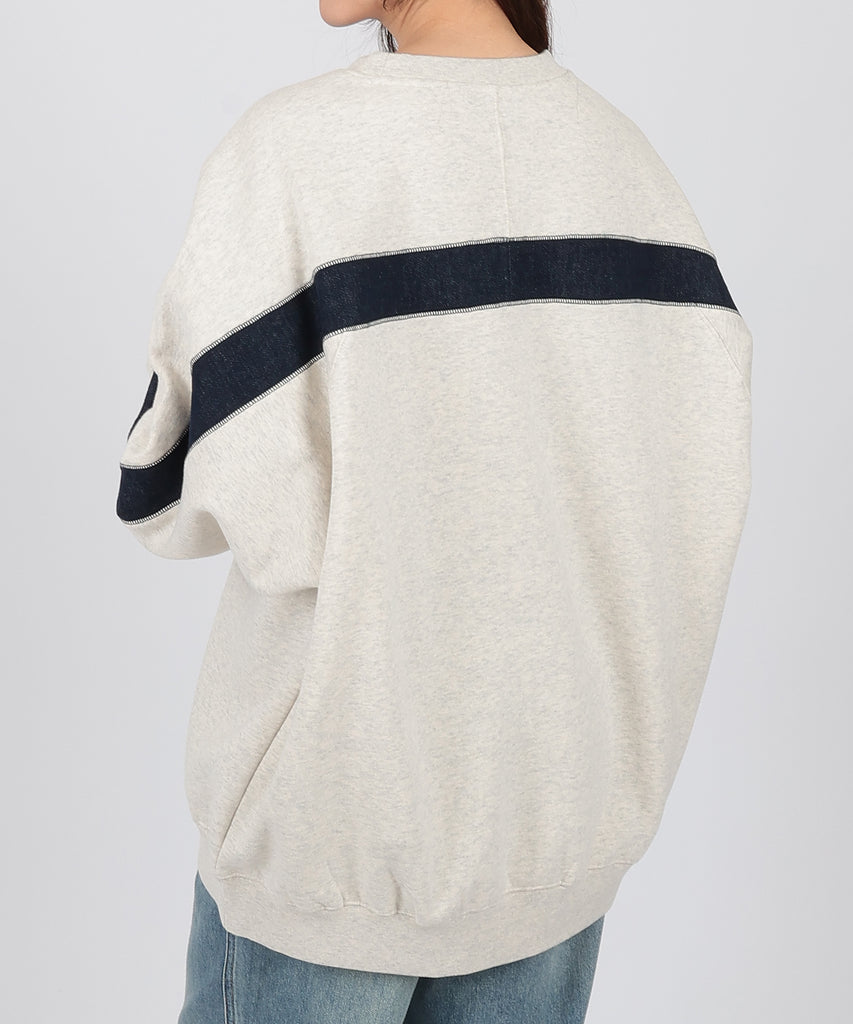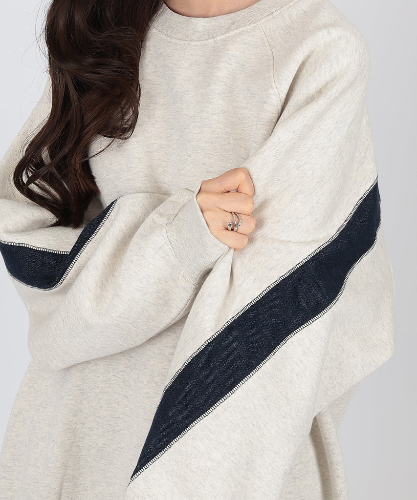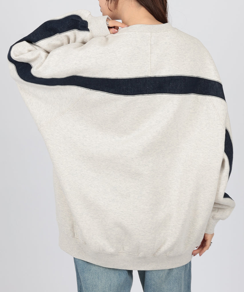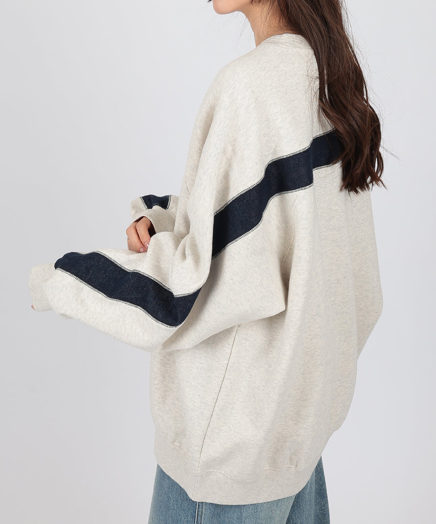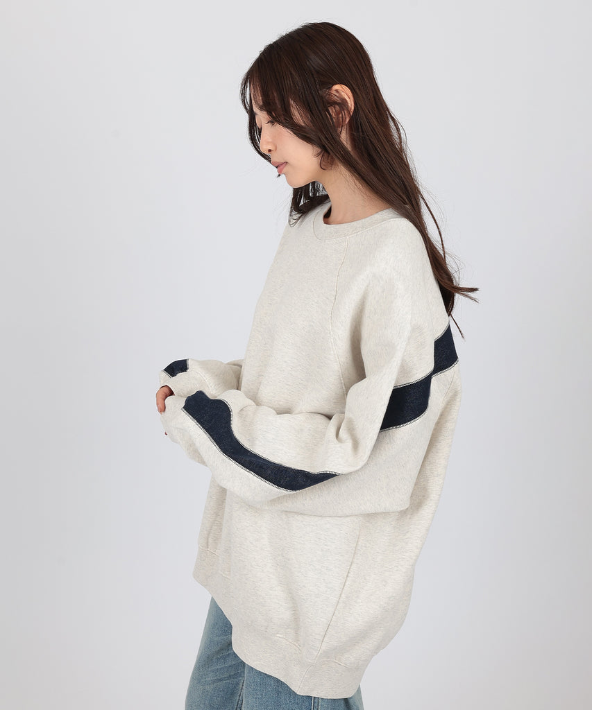 袖口からバックスタイルにかけて施した、配色ラインが目を惹くスウェットプルオーバー。
