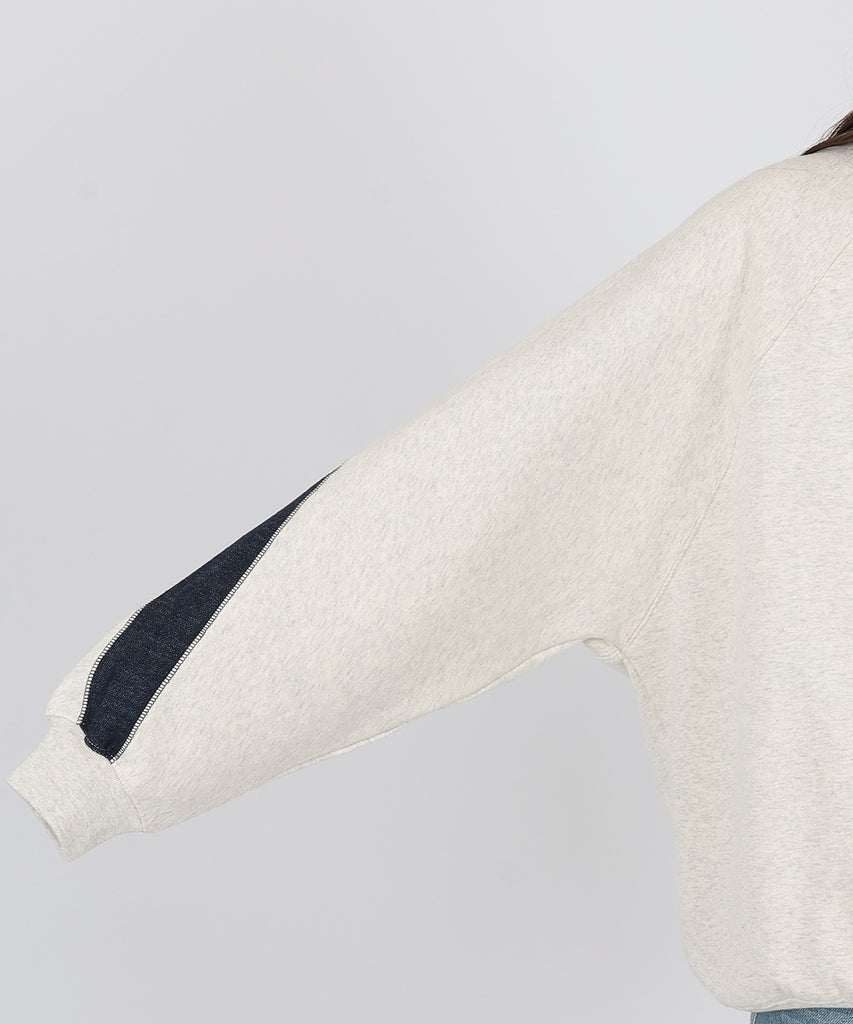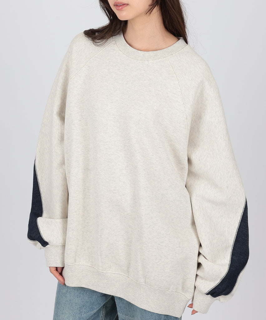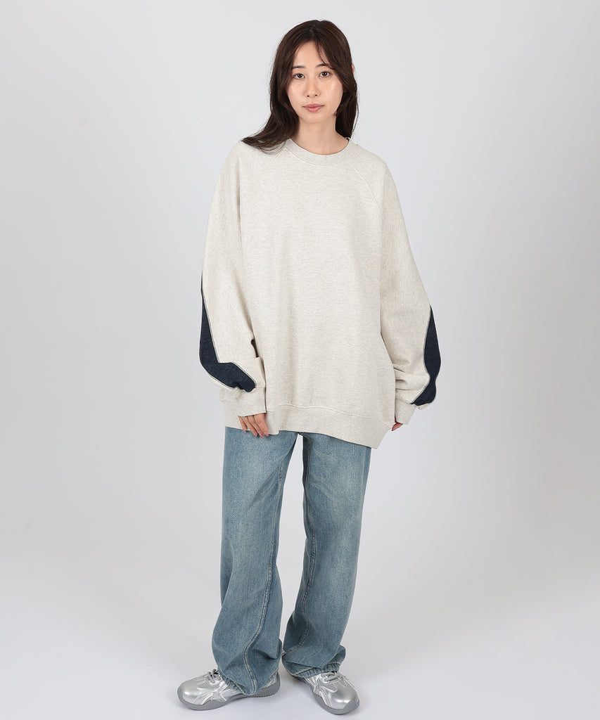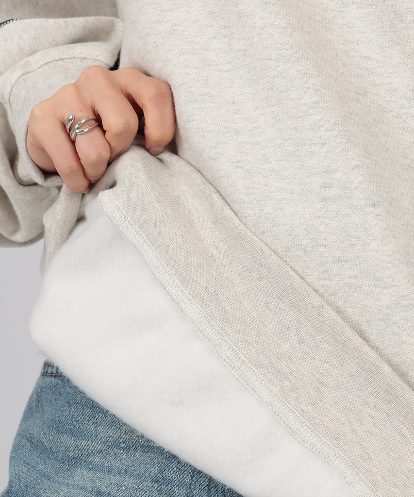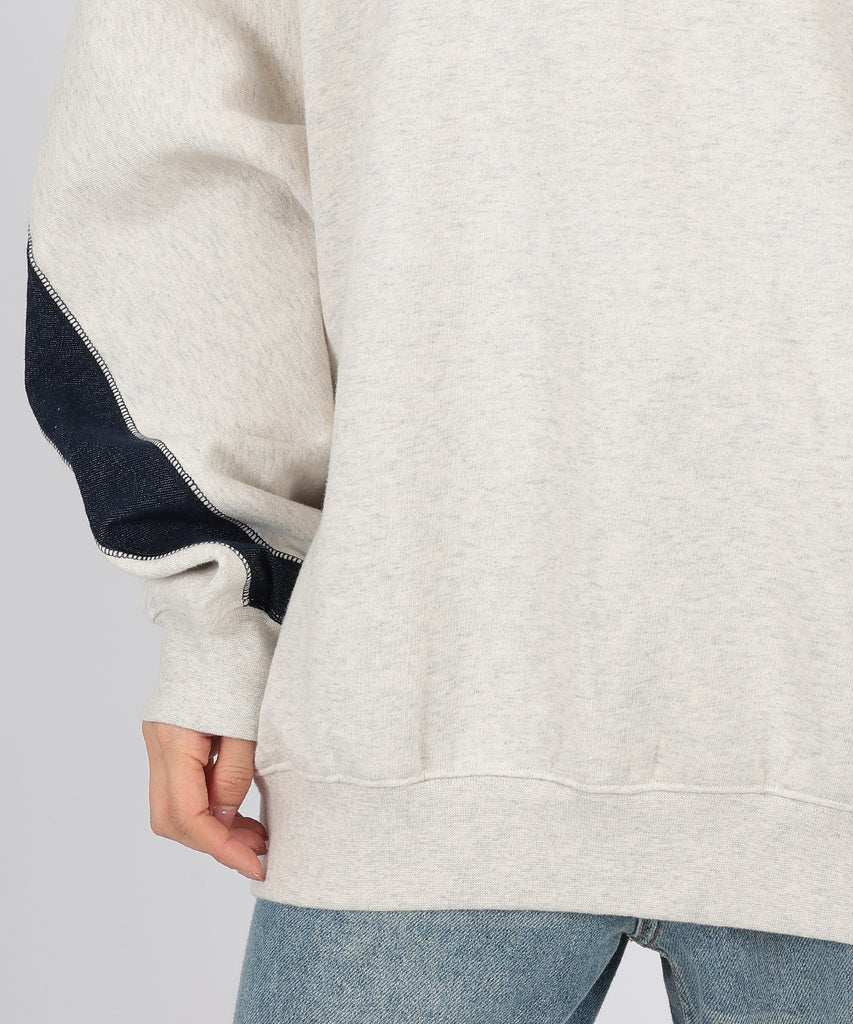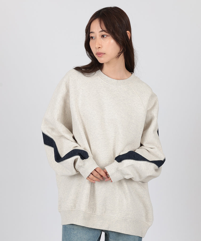 袖口からバックスタイルにかけて施した、配色ラインが目を惹くスウェットプルオーバー。