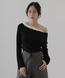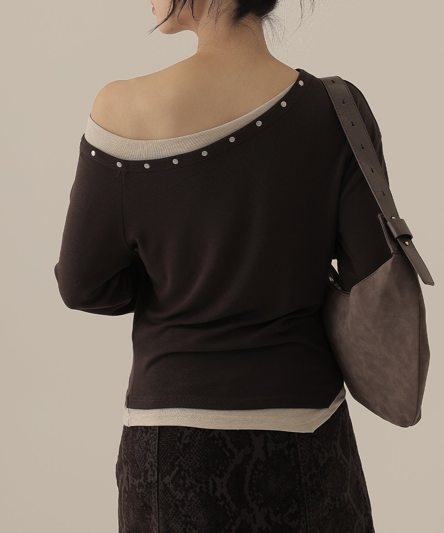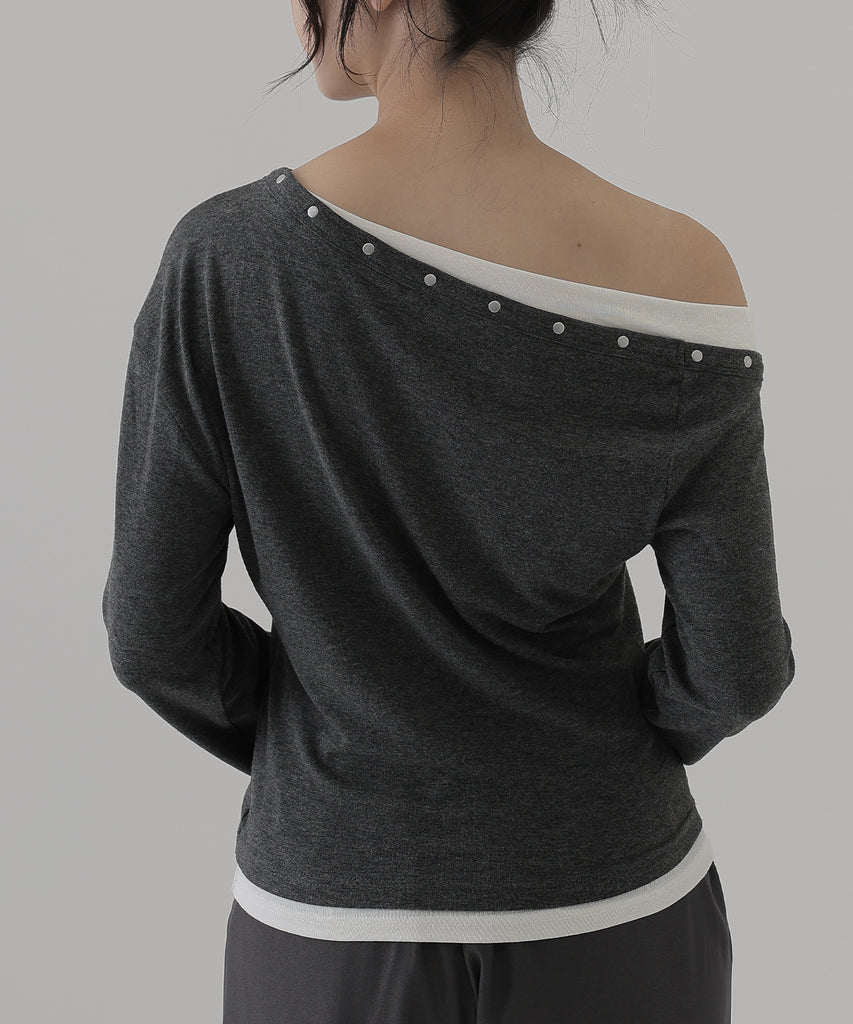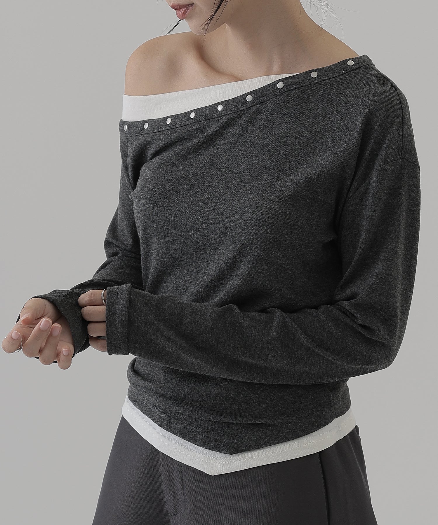 カットソーを2枚重ねたようなデザインが目を惹く長袖トップス。