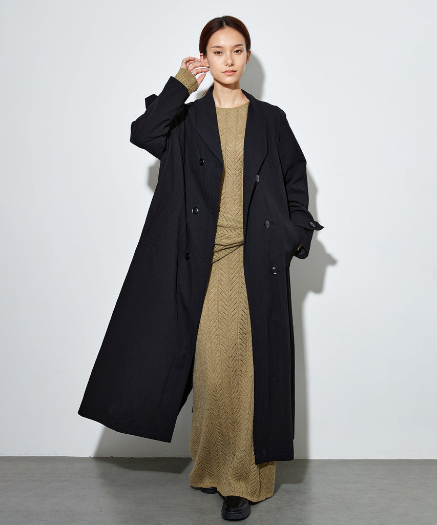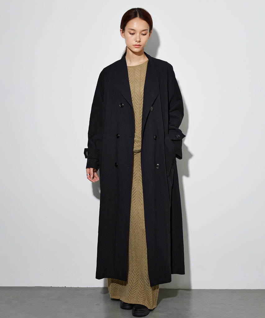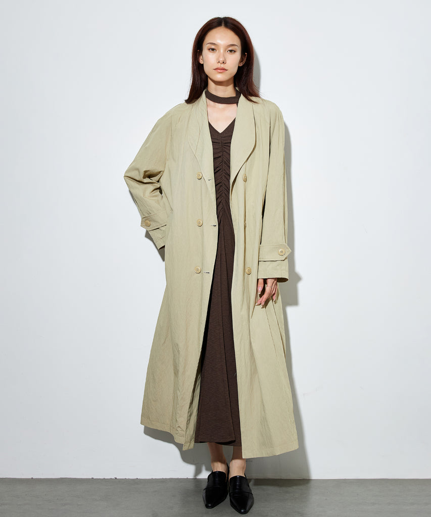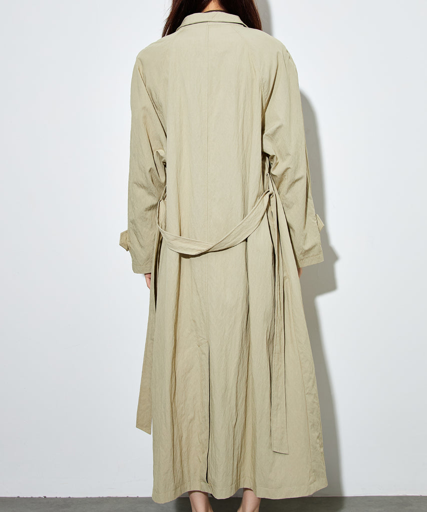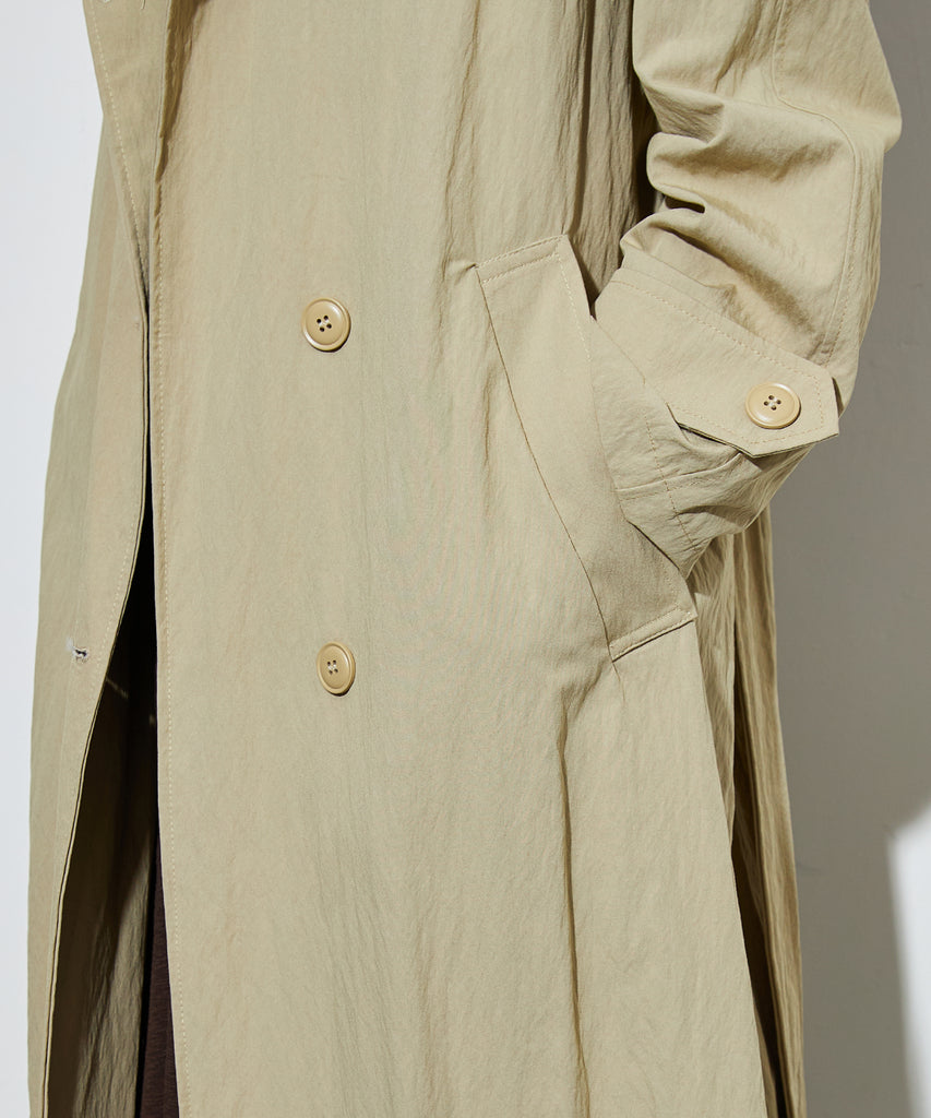 ナイロンを混紡したライトな素材感のロングコート。