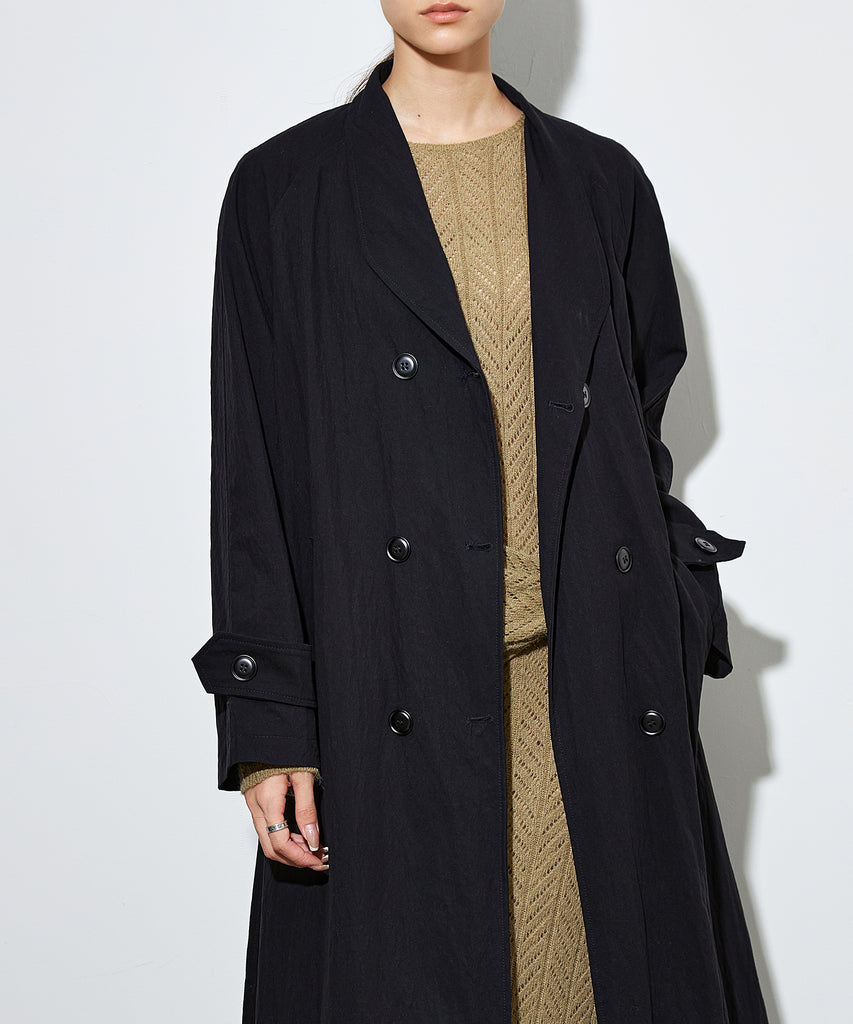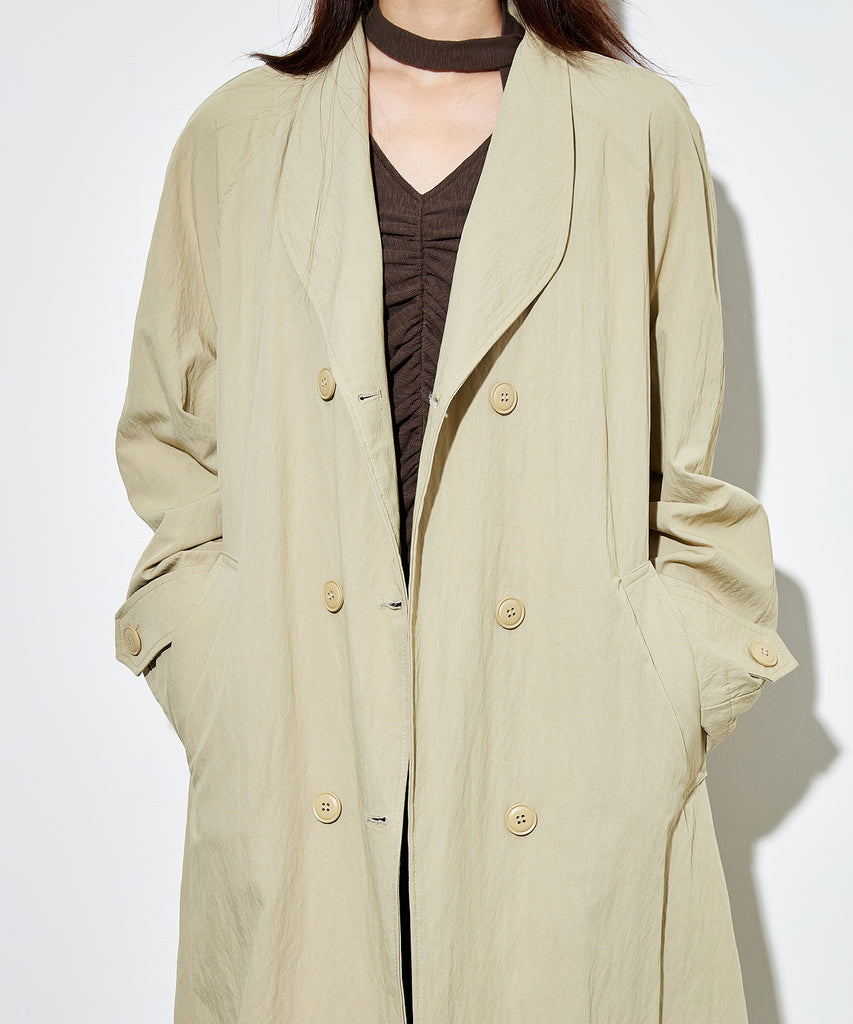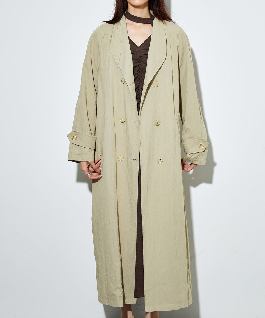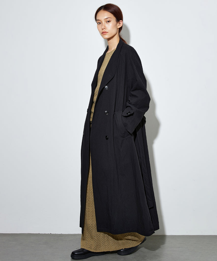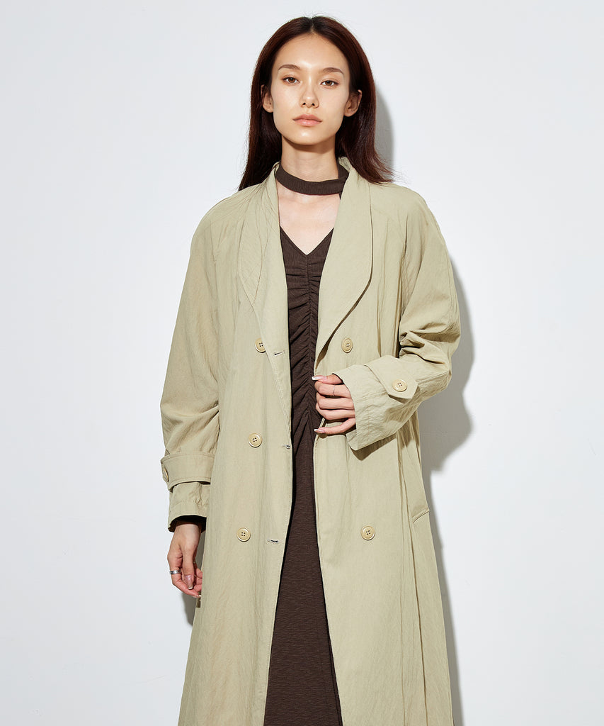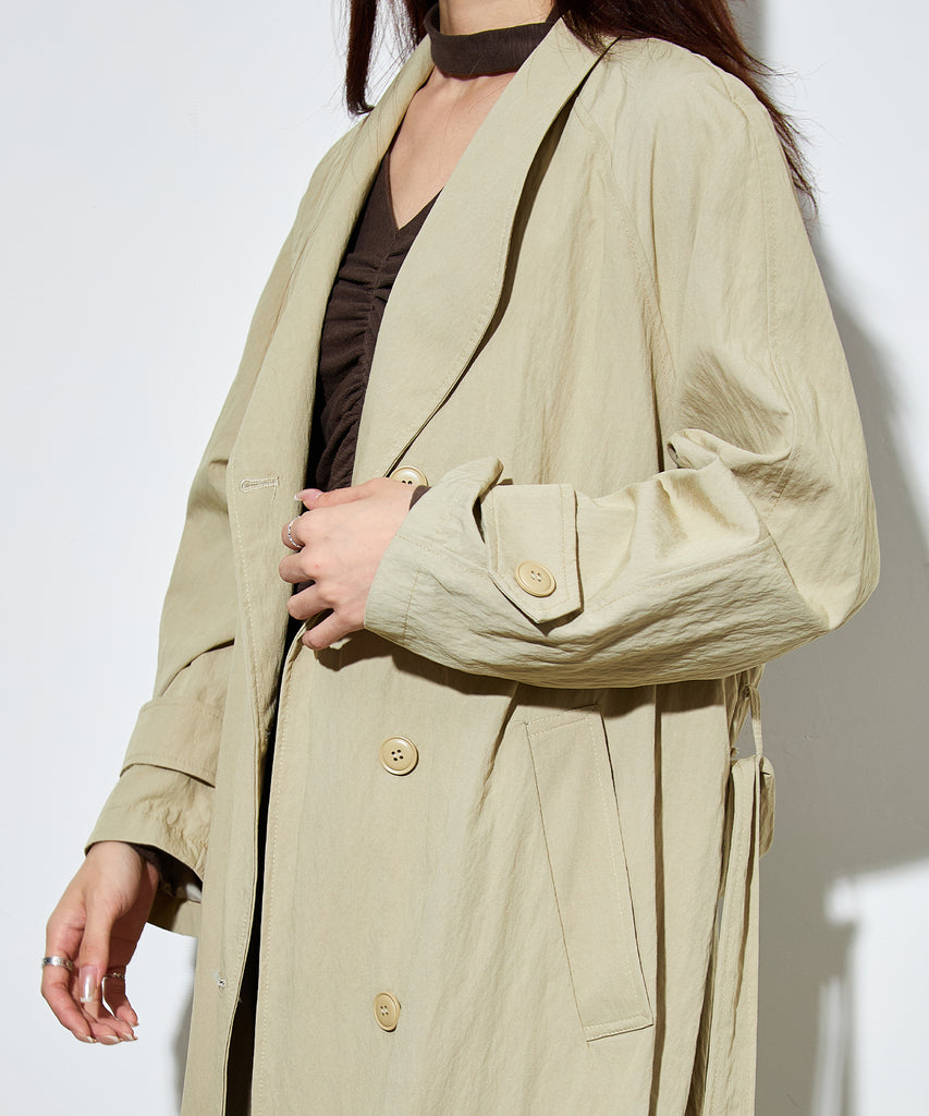 ナイロンを混紡したライトな素材感のロングコート。