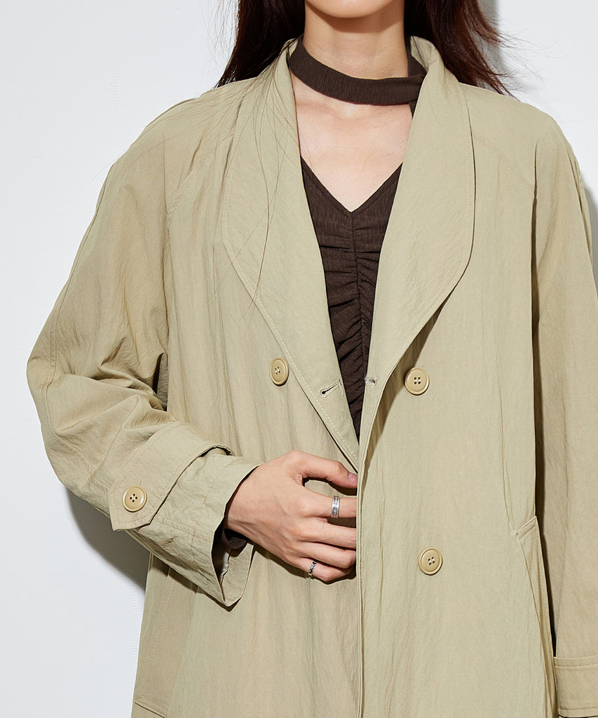 double button belted coat