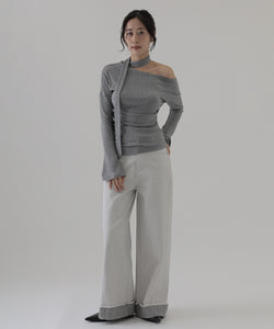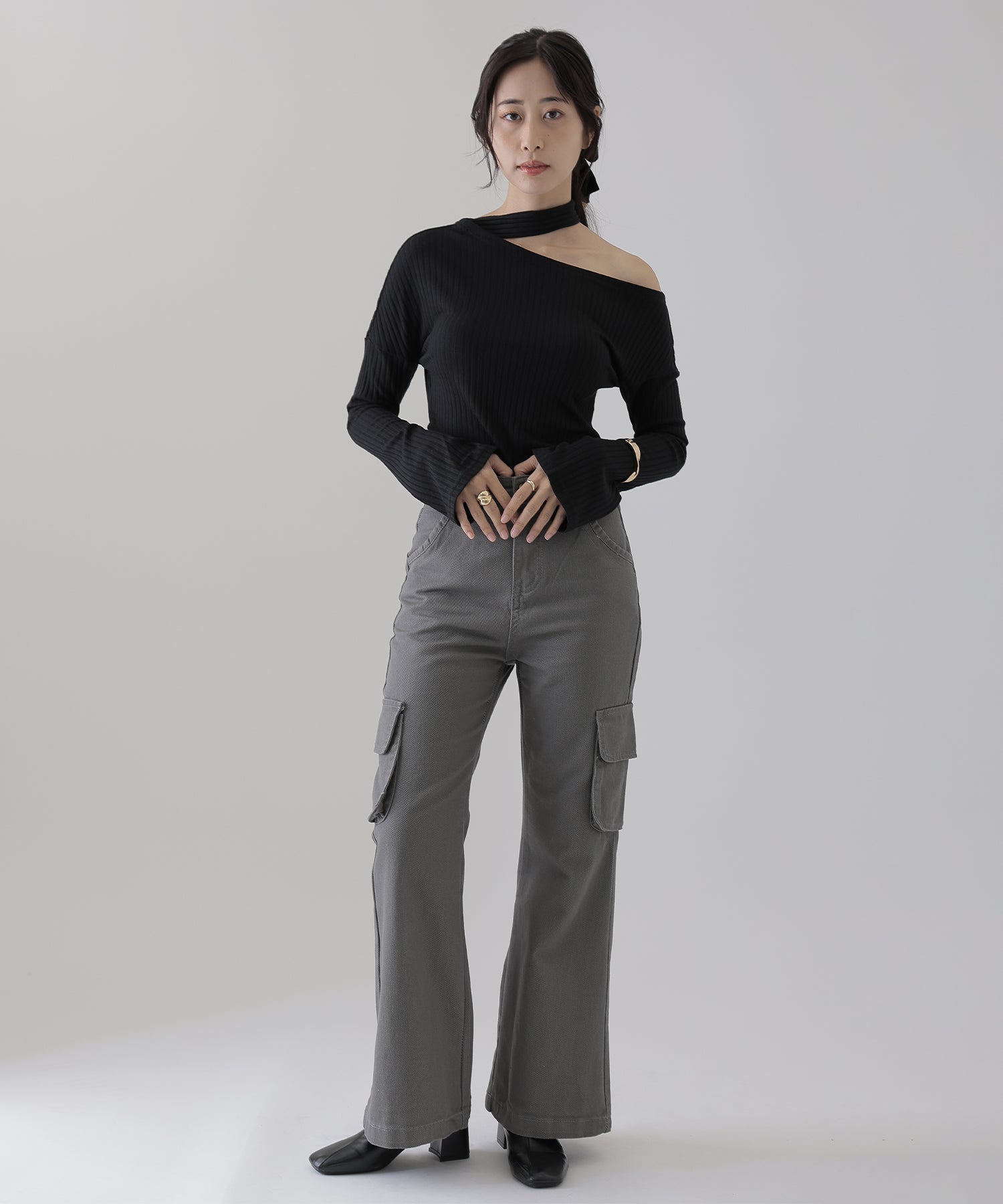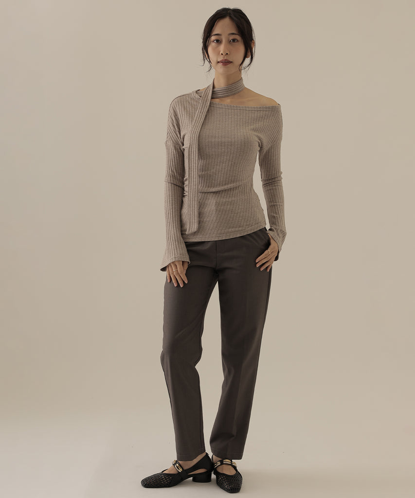 細身のシルエットに加え、リブが縦のラインを強調してくれるので細見えするのも嬉しいポイントです。