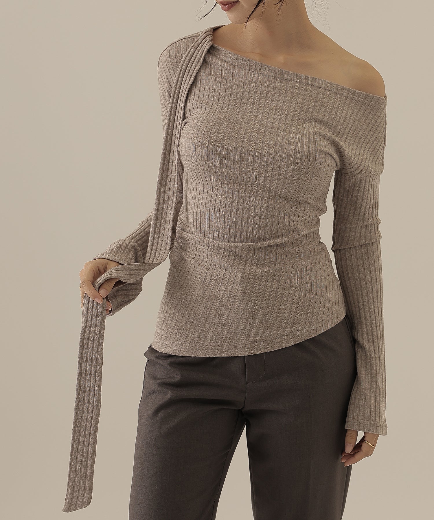 ワンショルダーデザインも相まって、抜け感を演出するレディーな1枚に。
