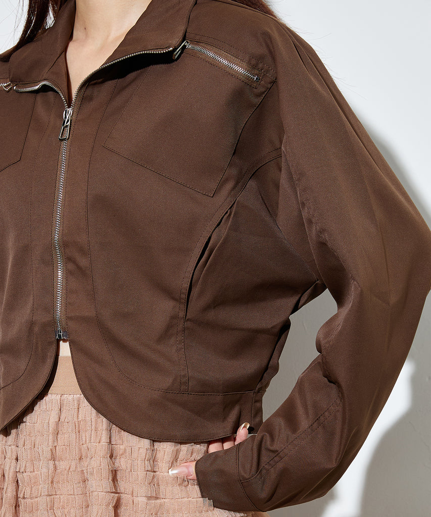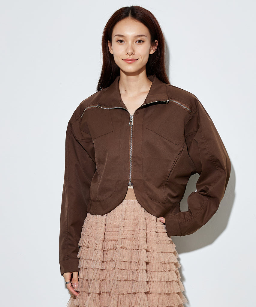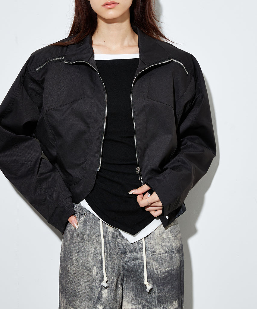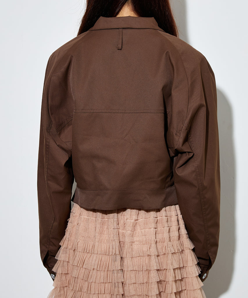 コットンを混紡した春秋兼用で着用できるショート丈のブルゾン。