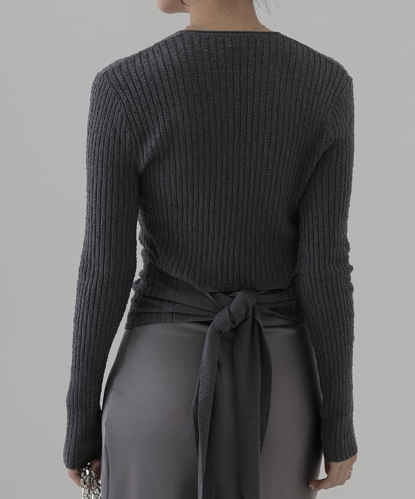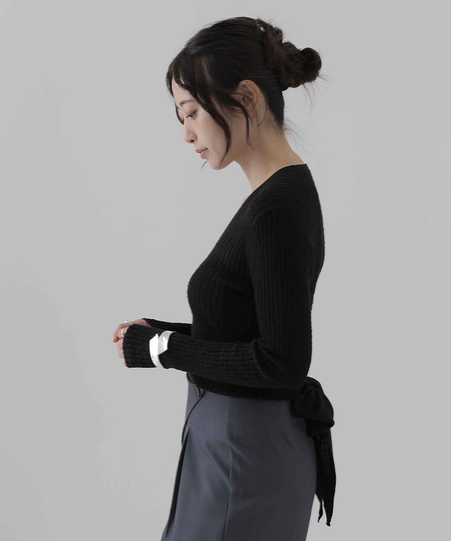 共布のバッグリボンが後ろ姿をおしゃれに演出するデザインカットソー。