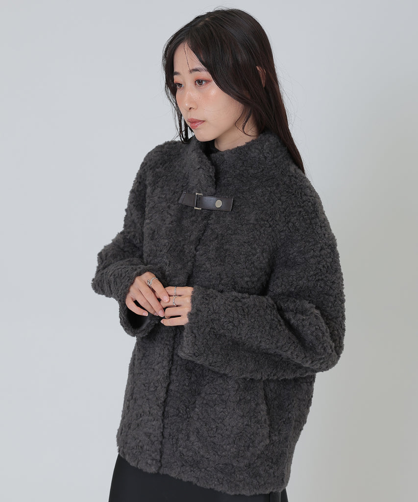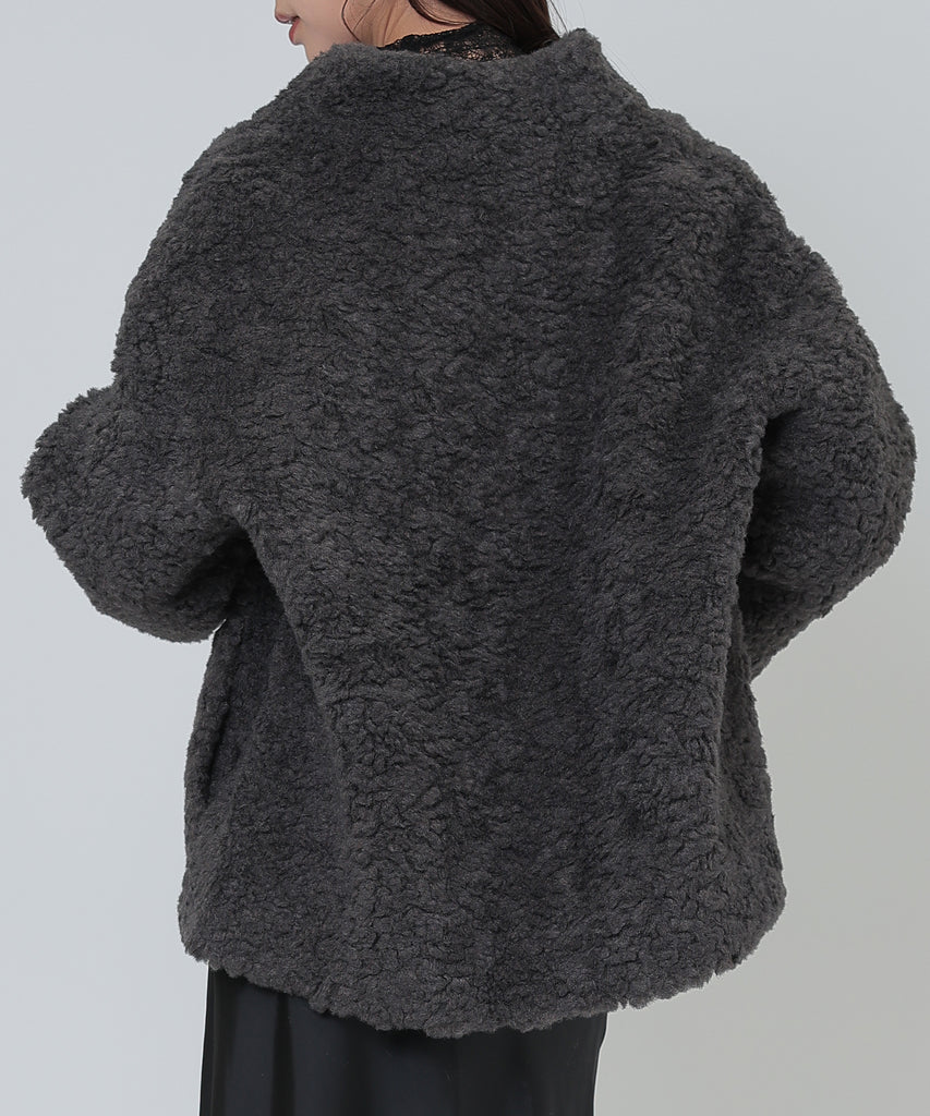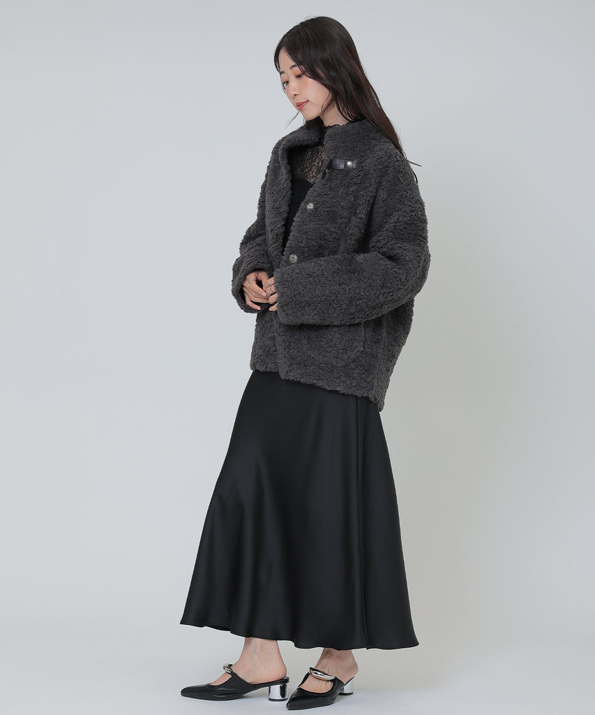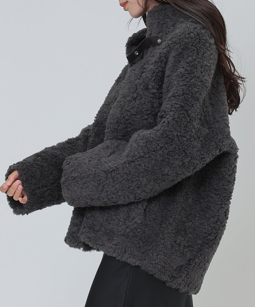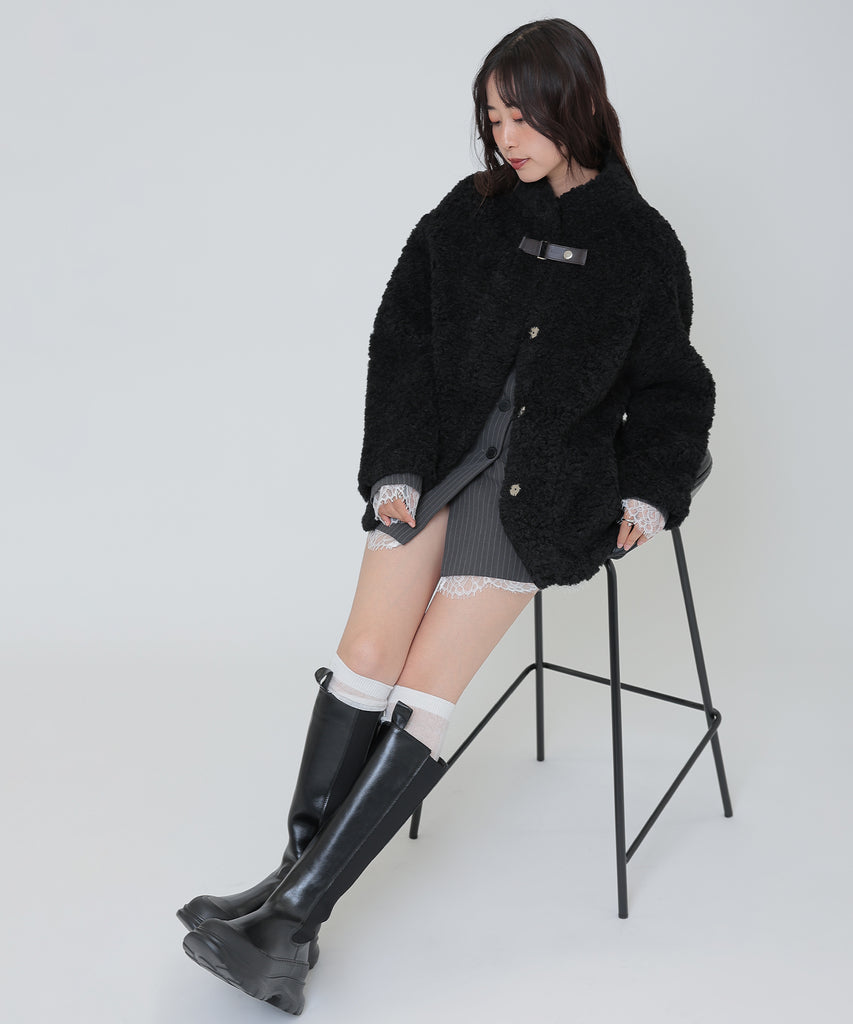 ソフトなボア素材がリッチな雰囲気をもたらすショートコート。