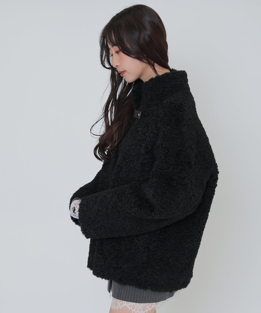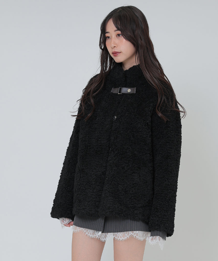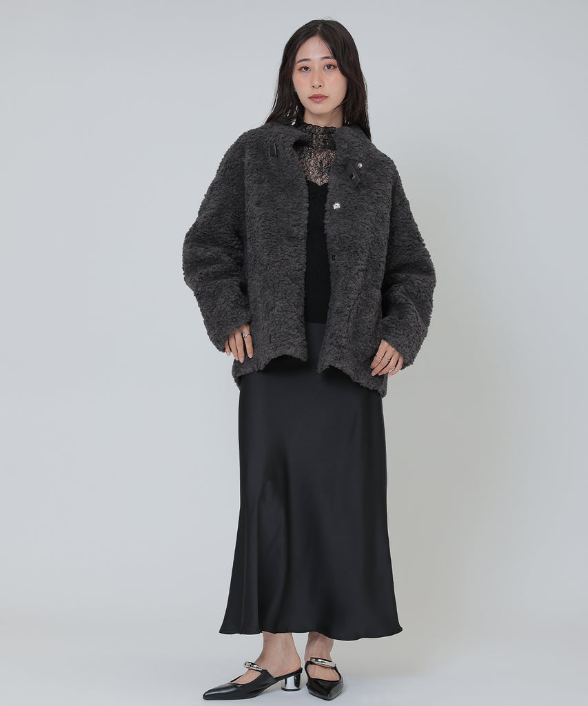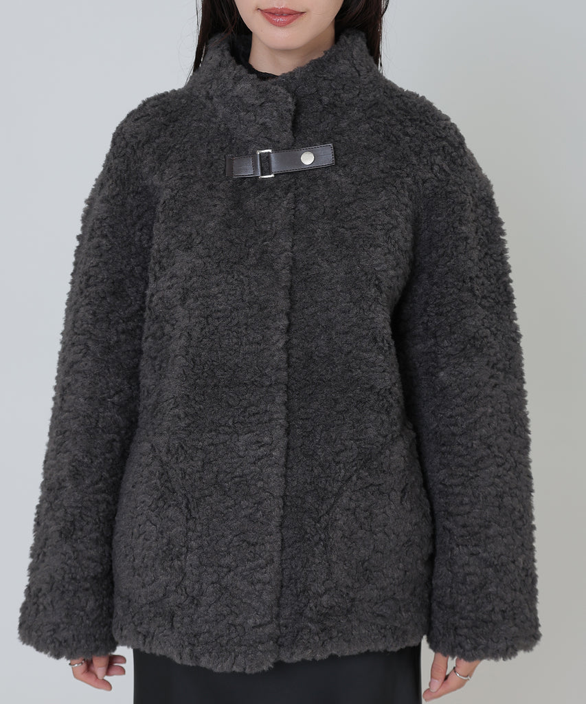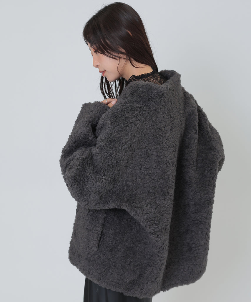 ソフトなボア素材がリッチな雰囲気をもたらすショートコート。