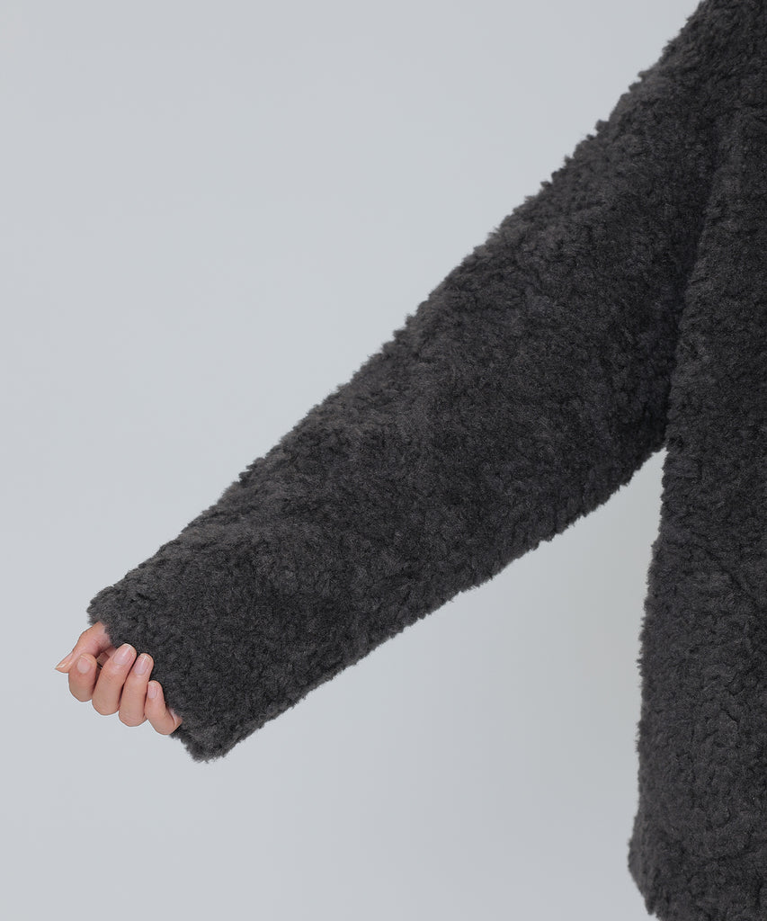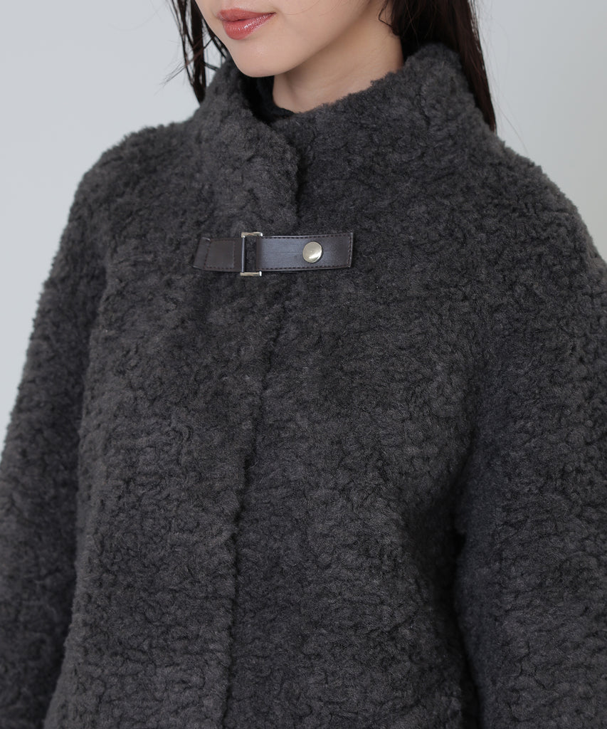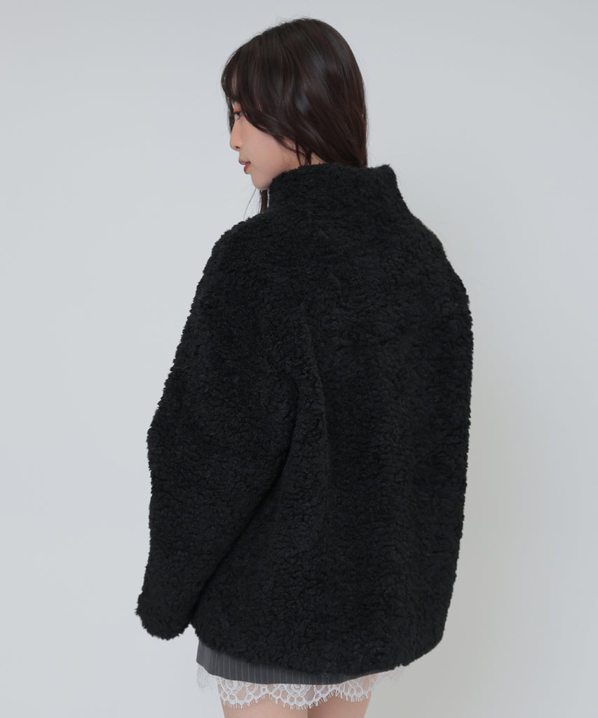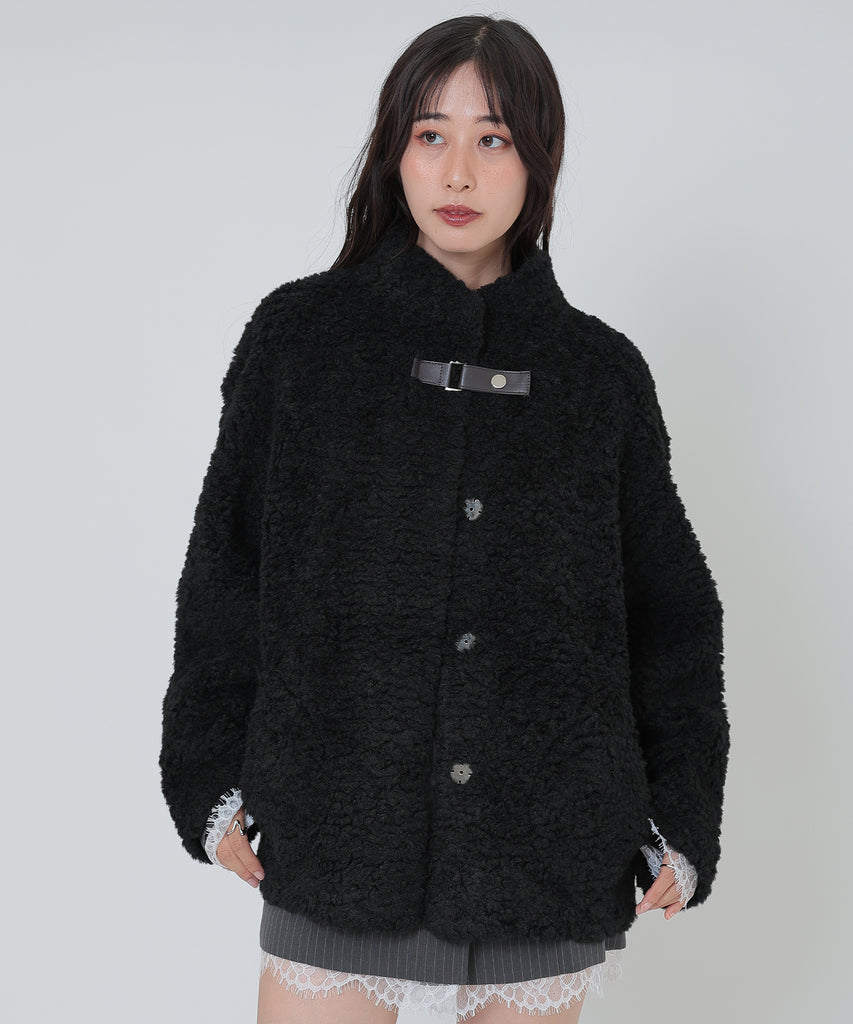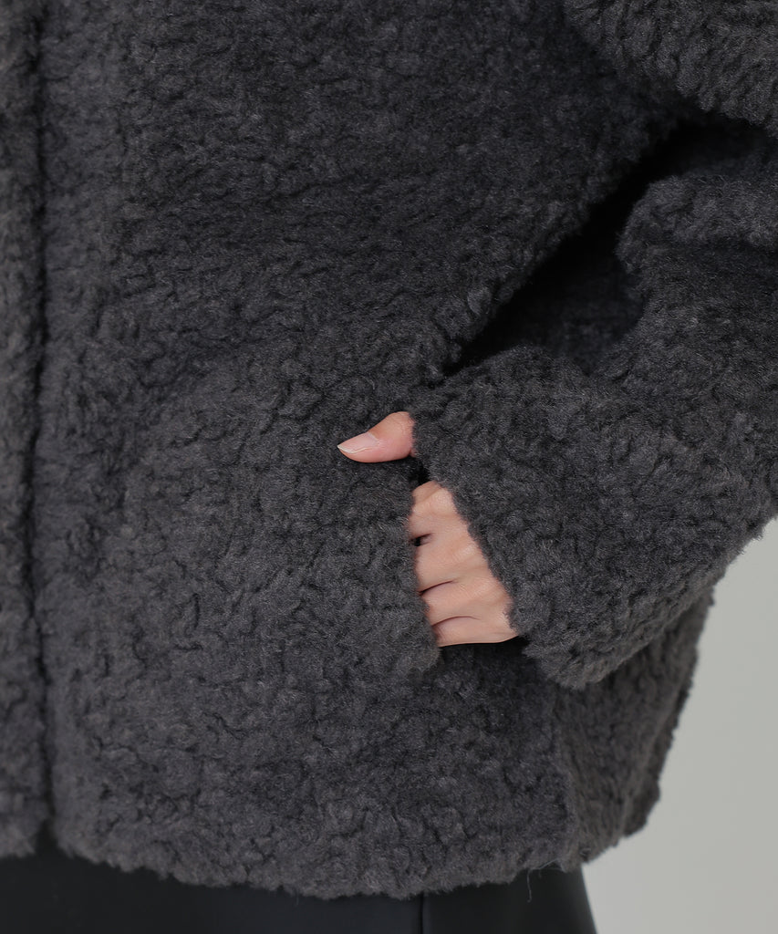 ソフトなボア素材がリッチな雰囲気をもたらすショートコート。