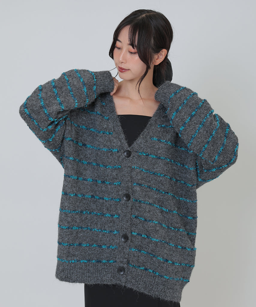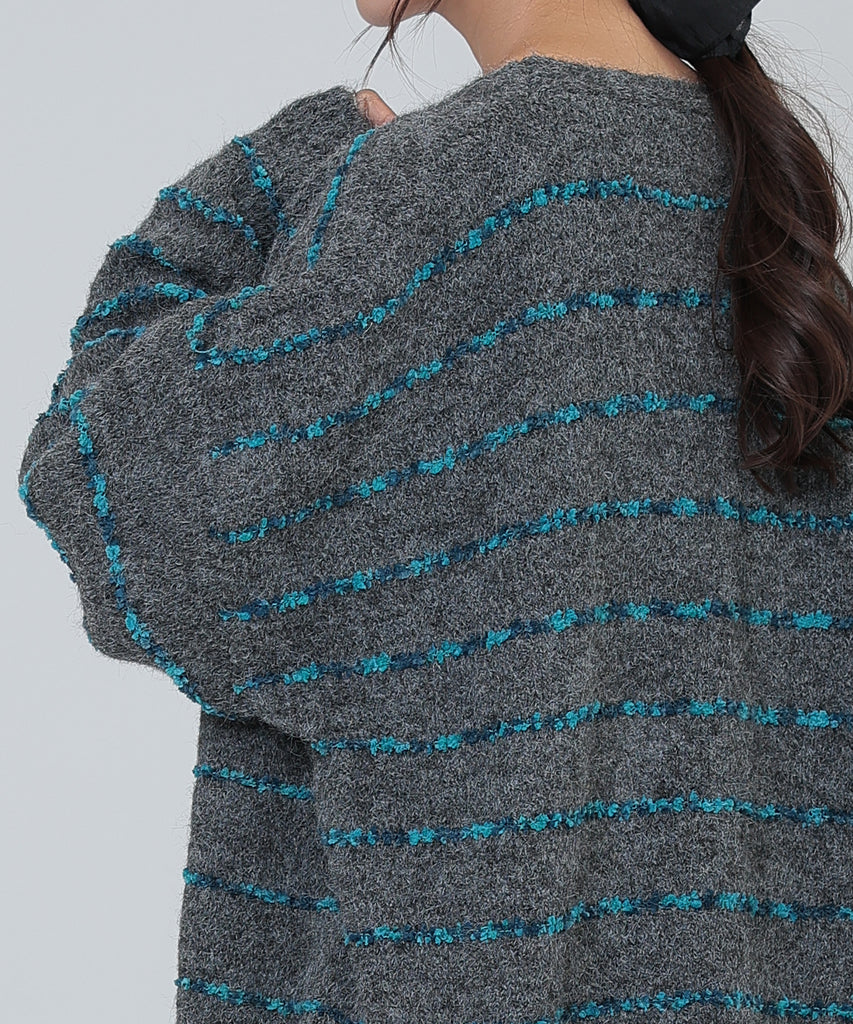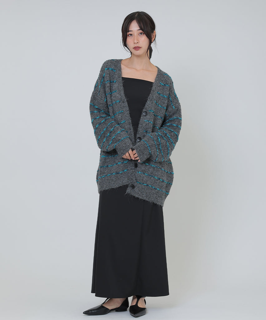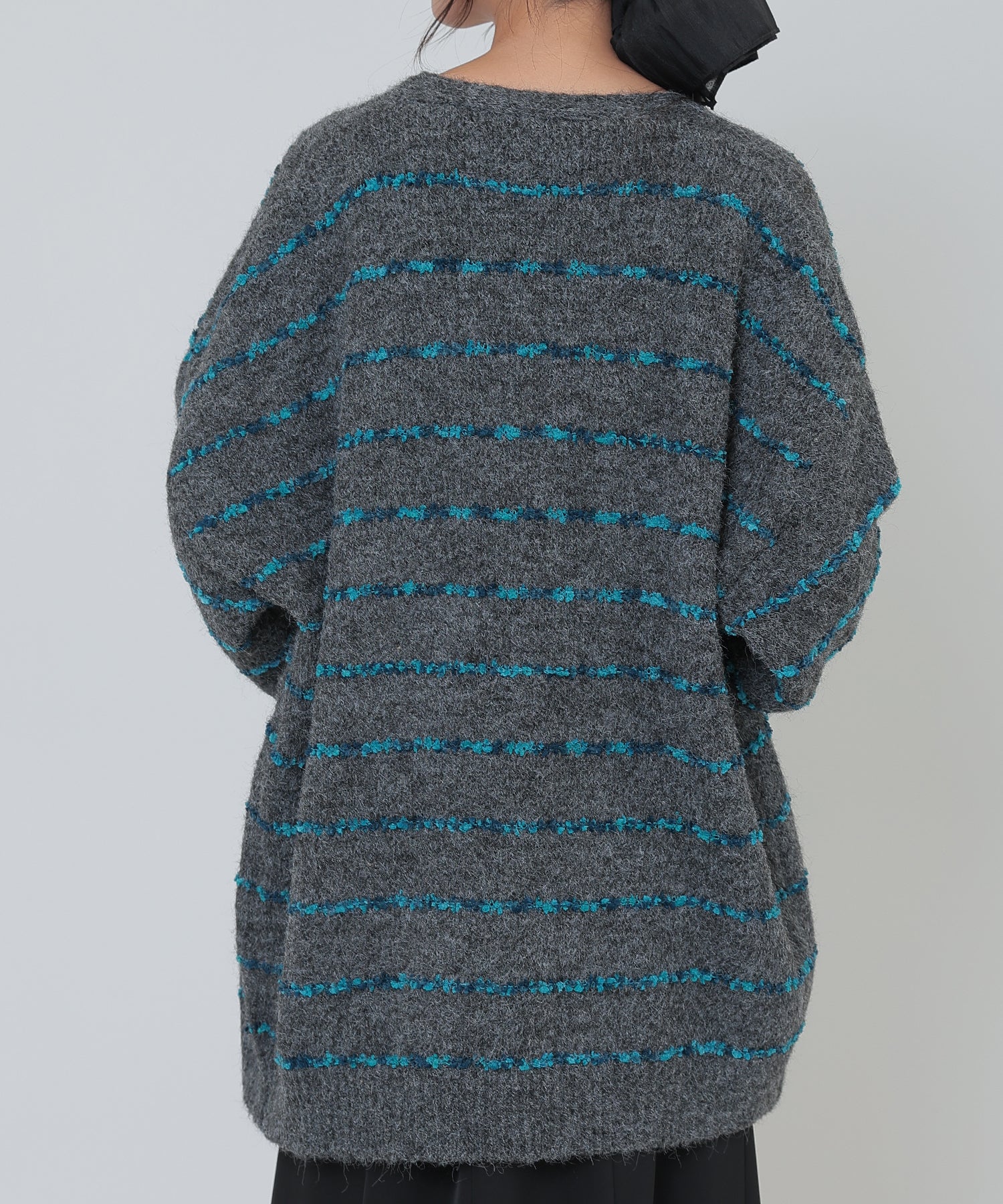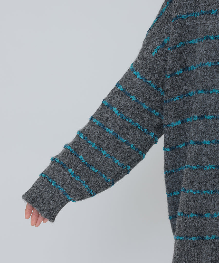 配色と表面感で魅せるボーダーの織りが、知的なエッセンスをプラスしています。