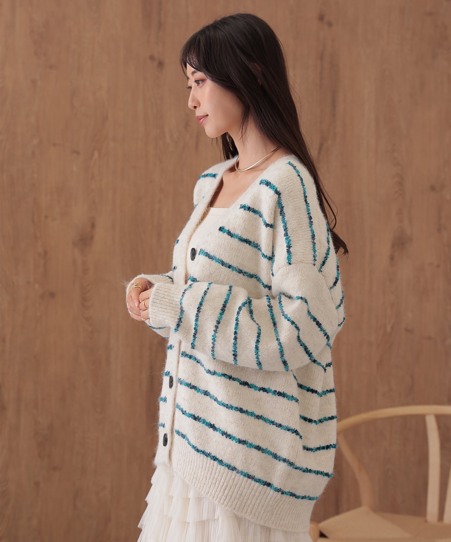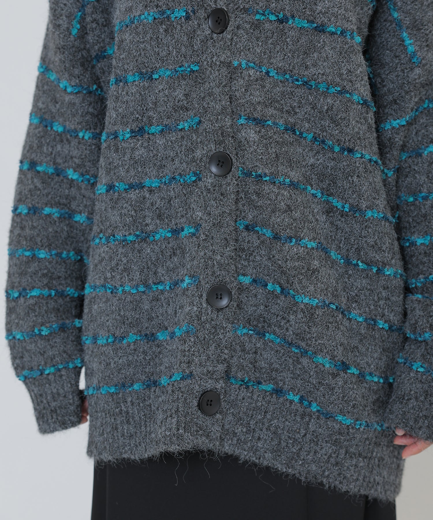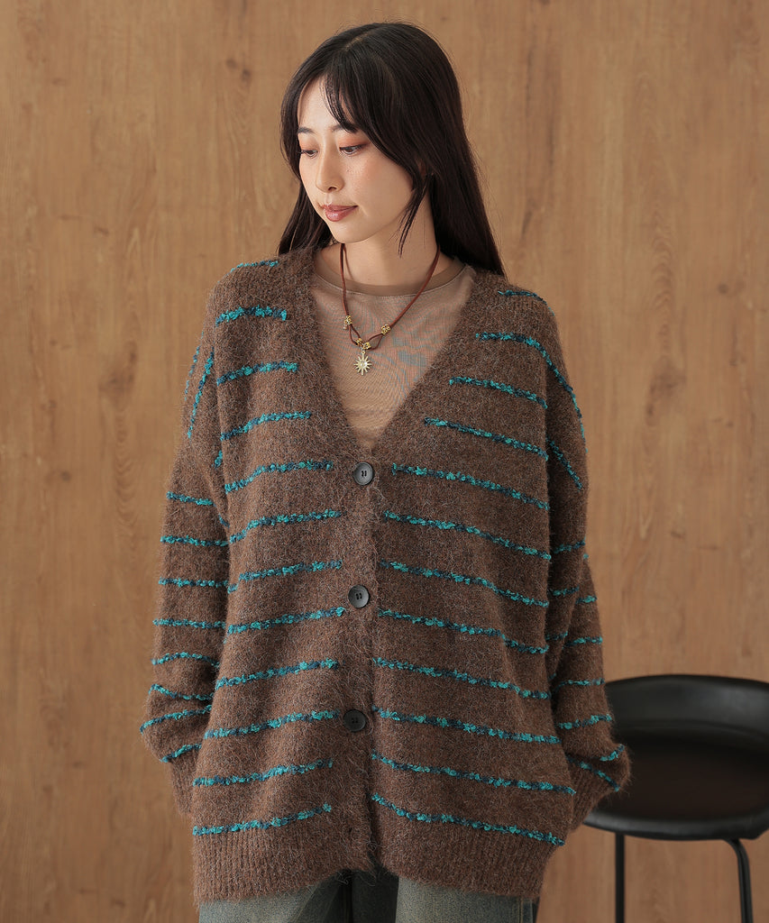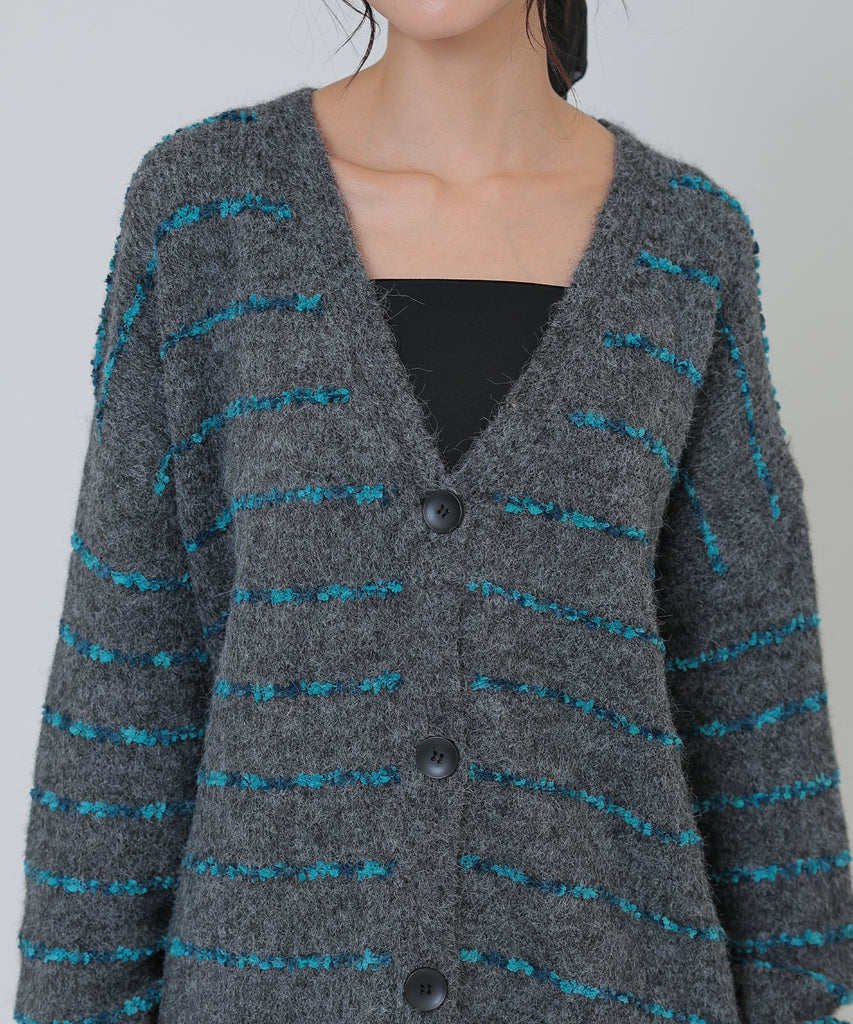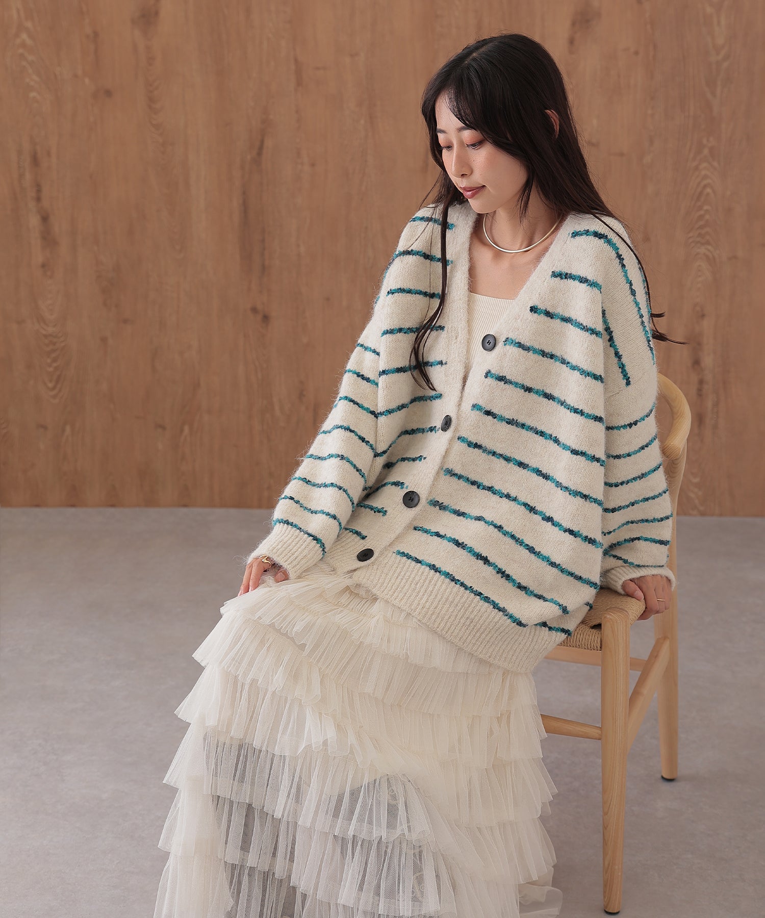 配色と表面感で魅せるボーダーの織りが、知的なエッセンスをプラスしています。