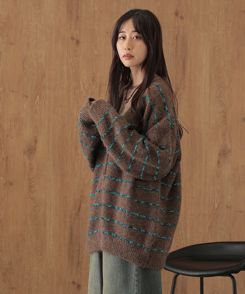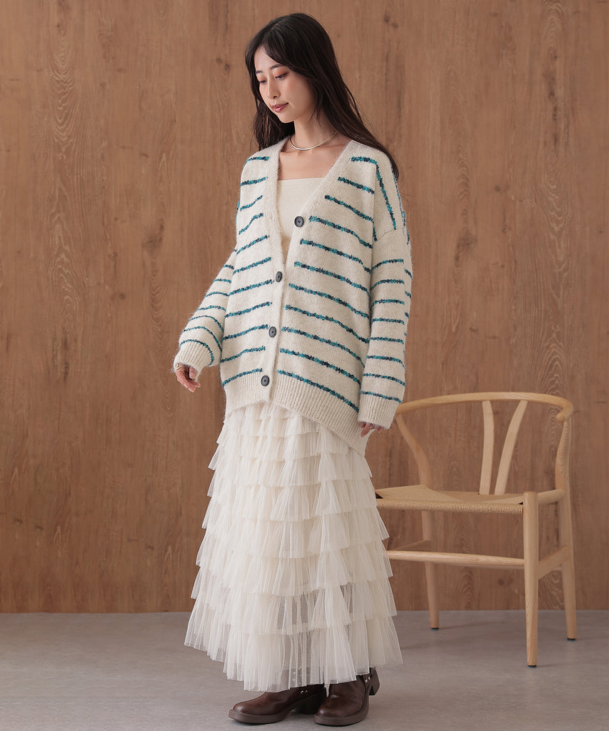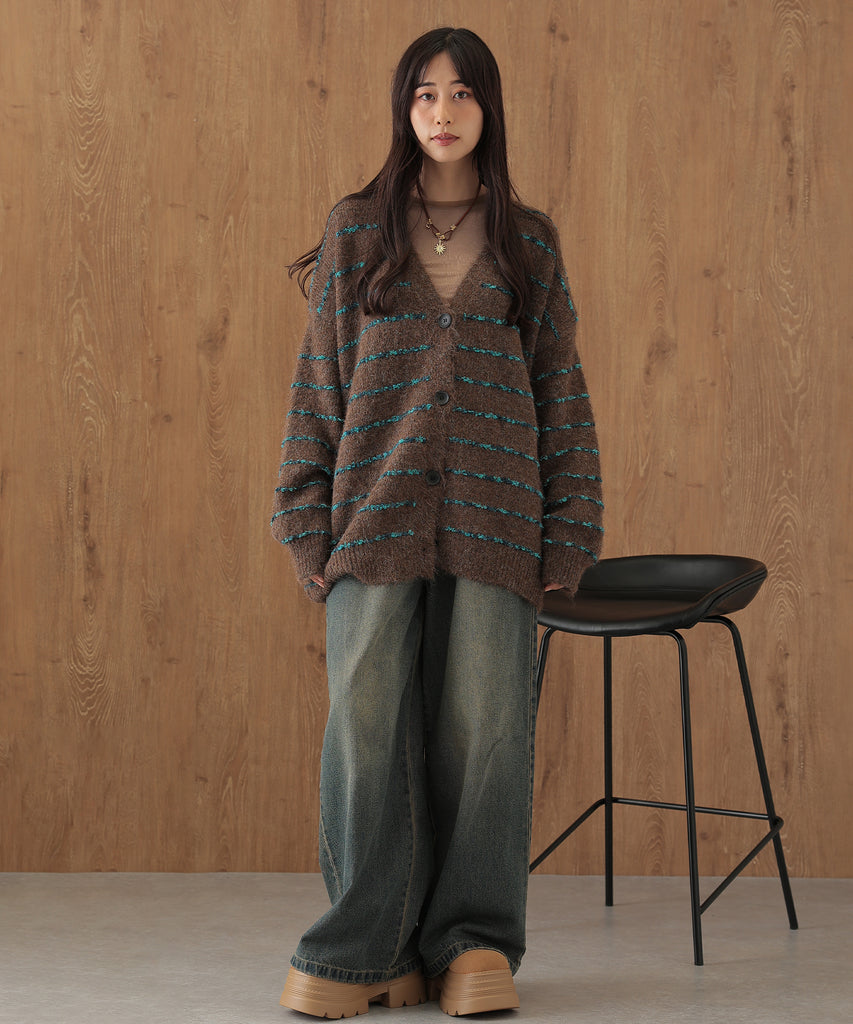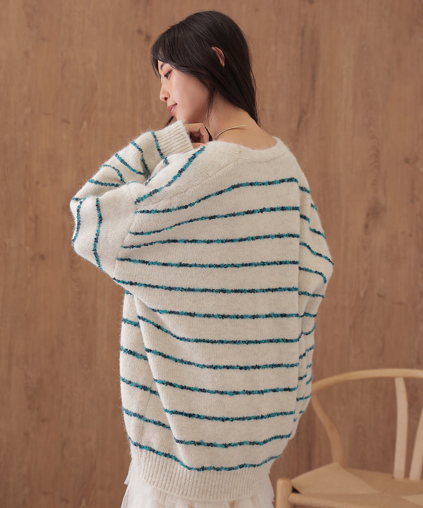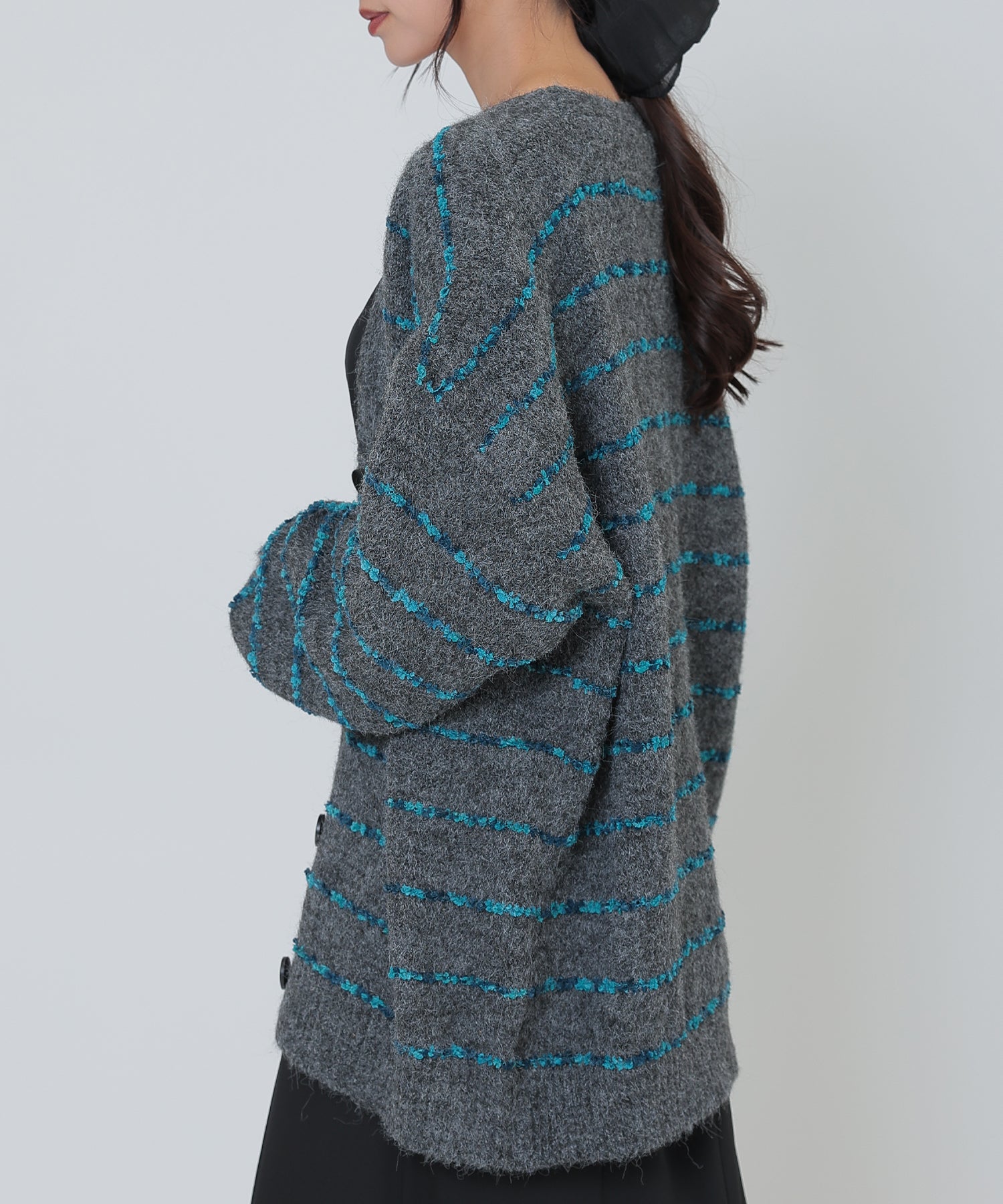 配色と表面感で魅せるボーダーの織りが、知的なエッセンスをプラスしています。