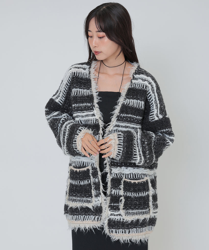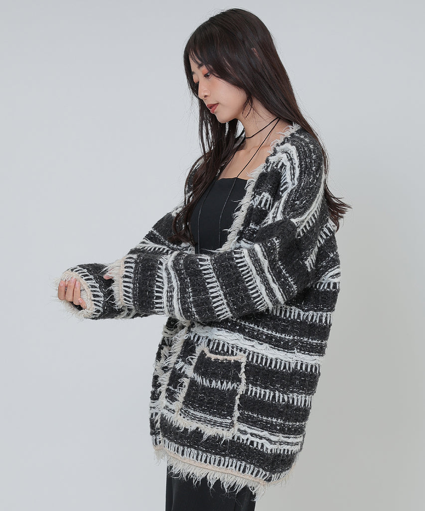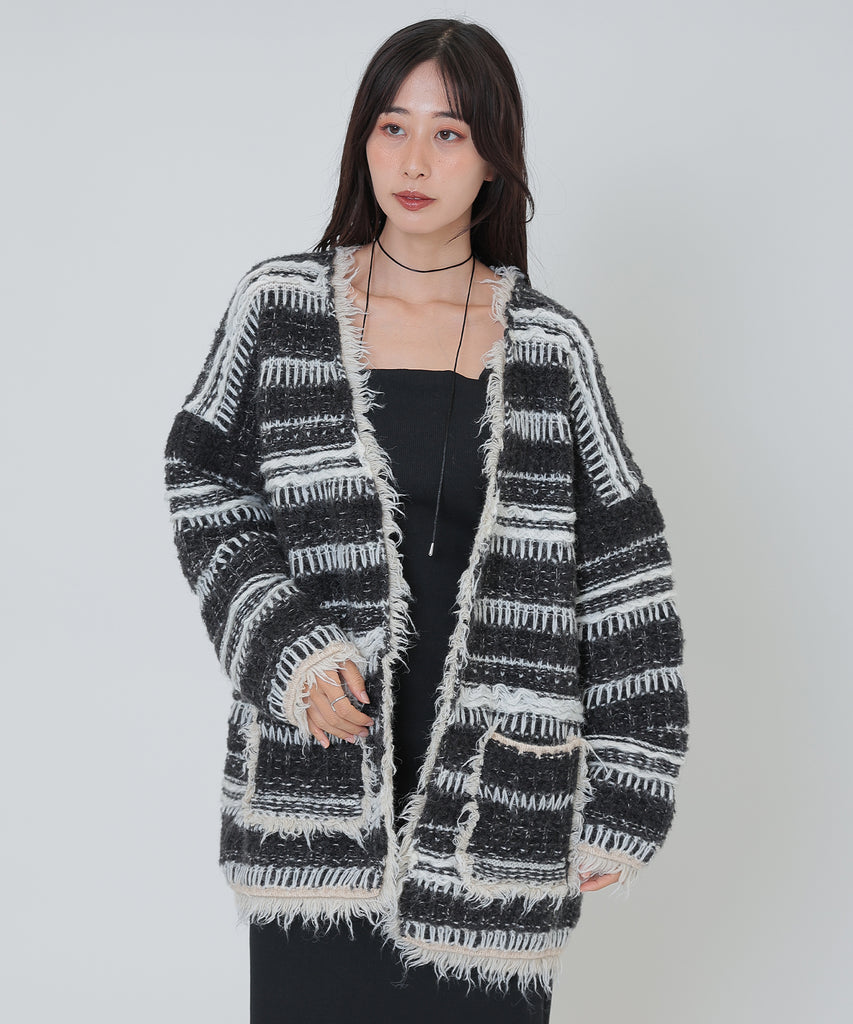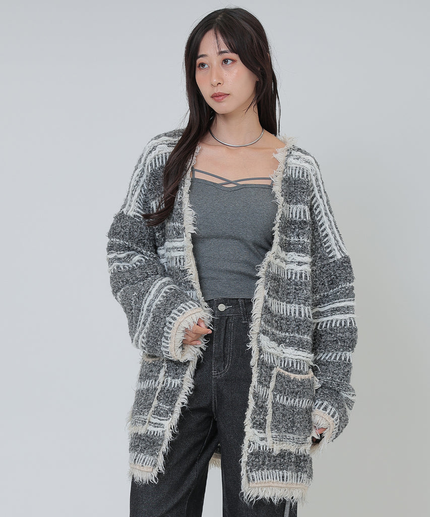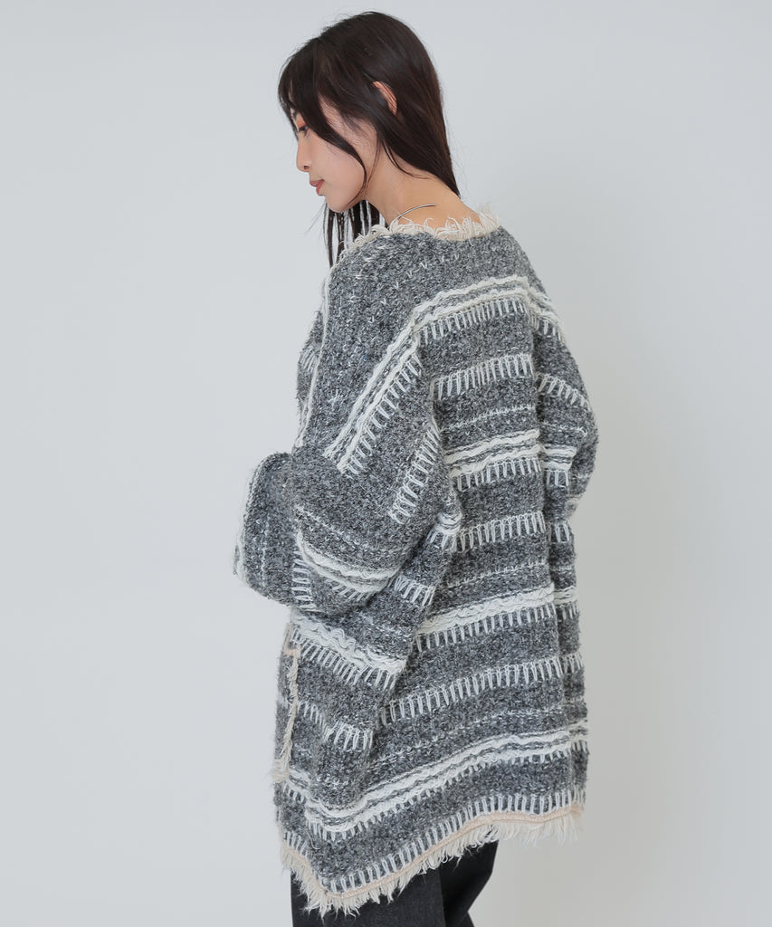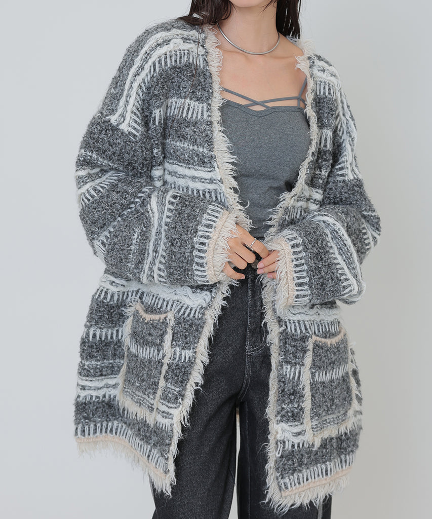 border stitch oversize knit cardigan