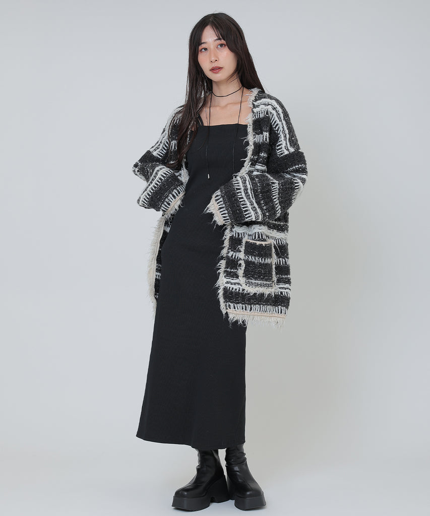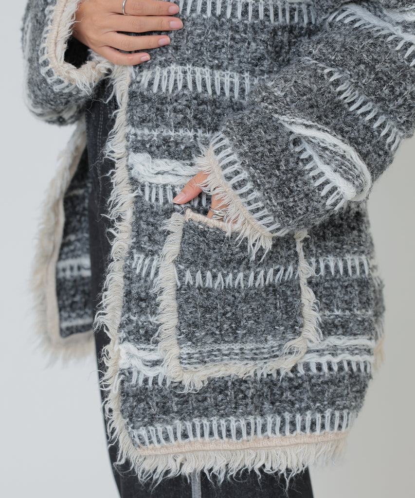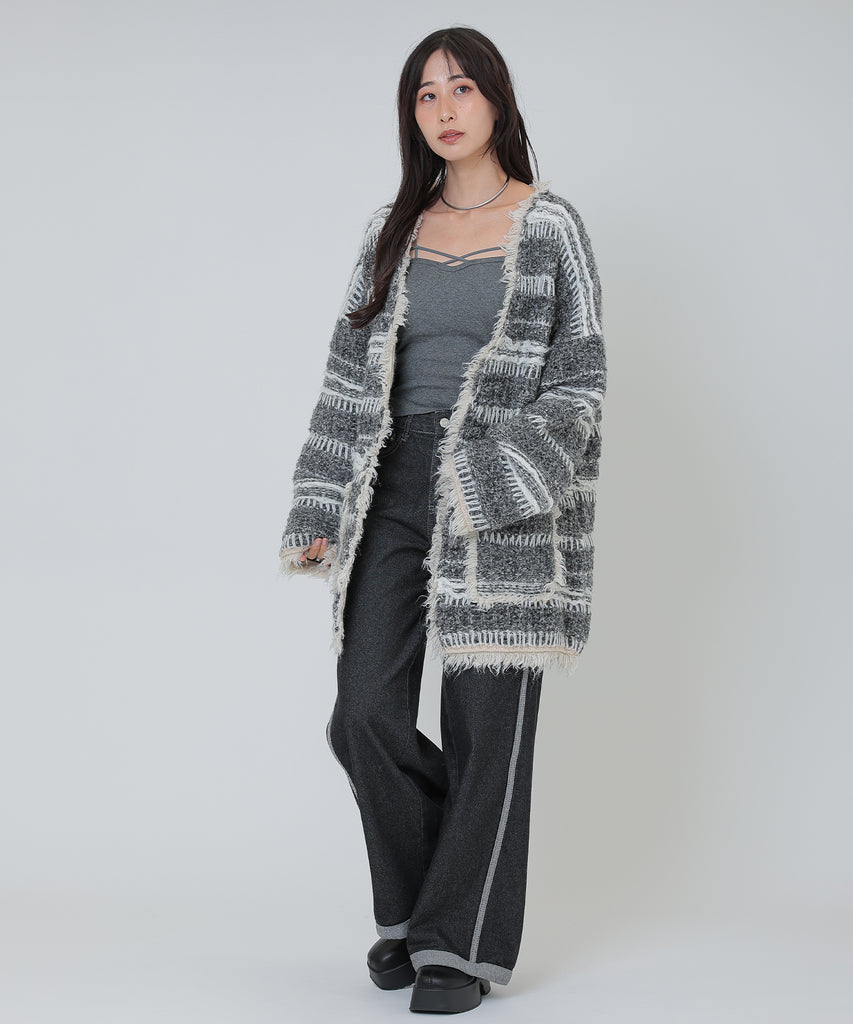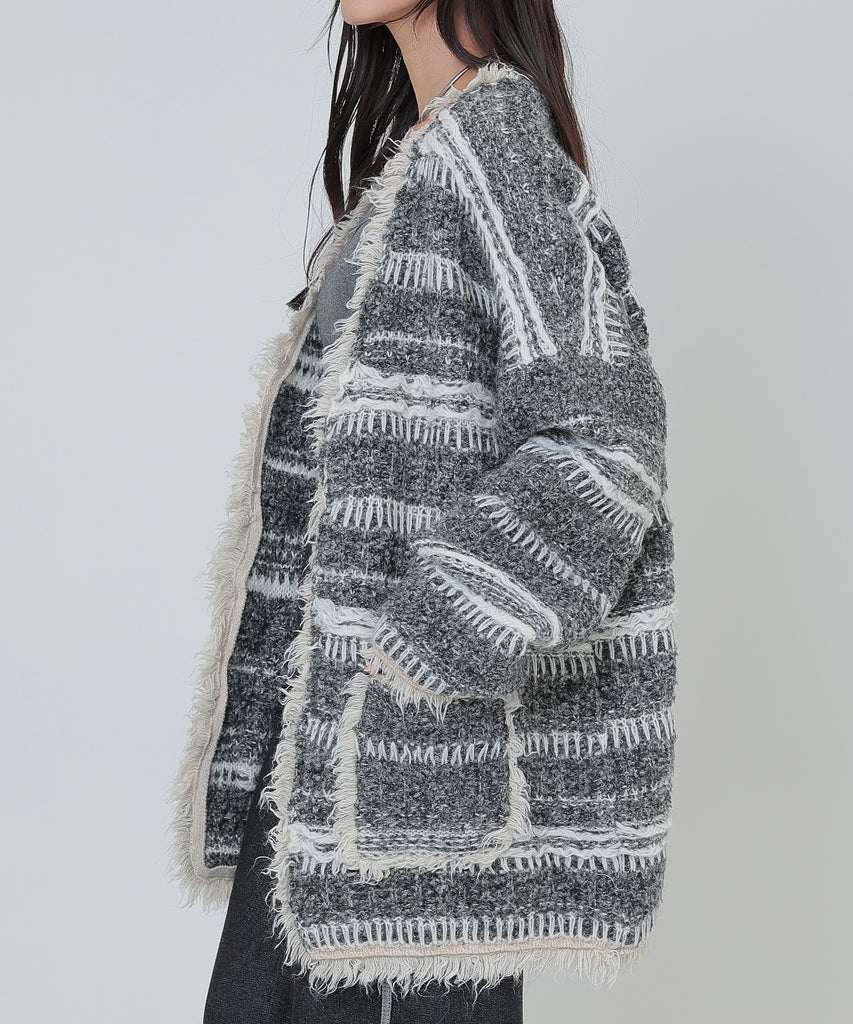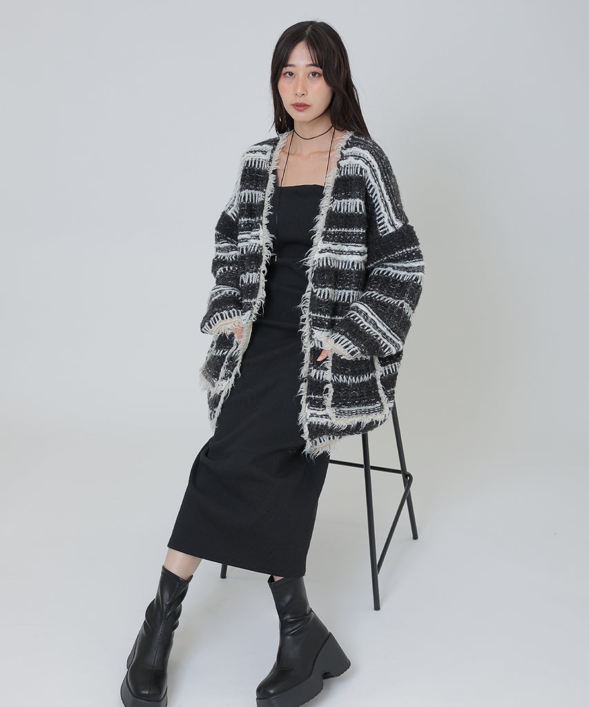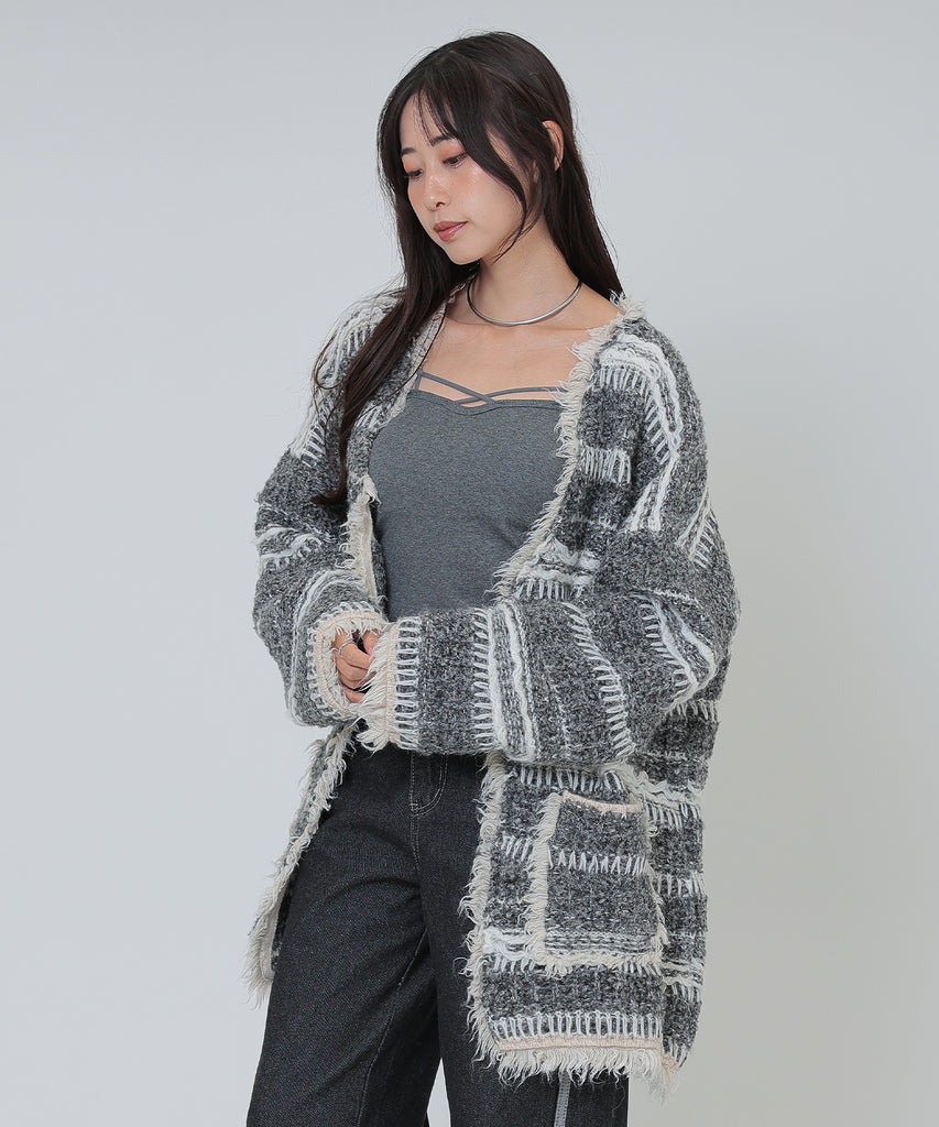 border stitch oversize knit cardigan