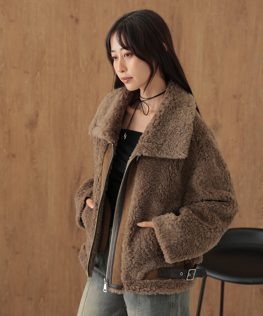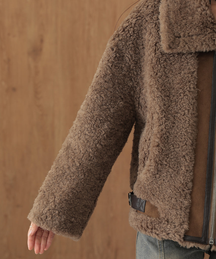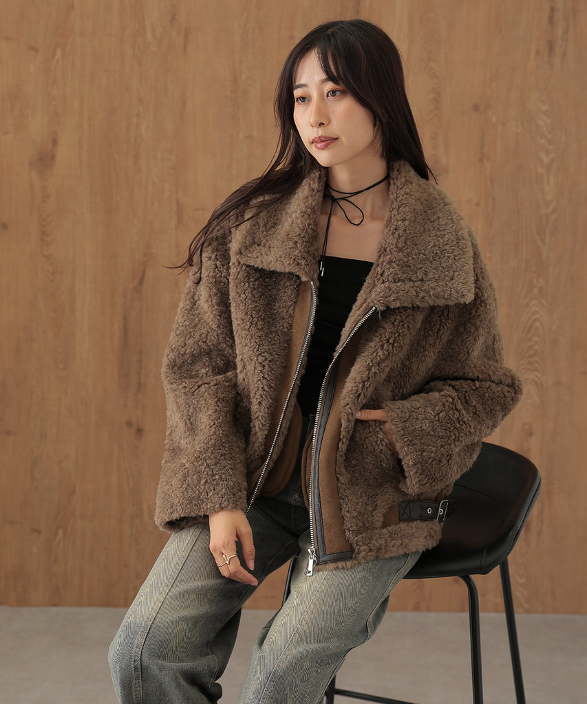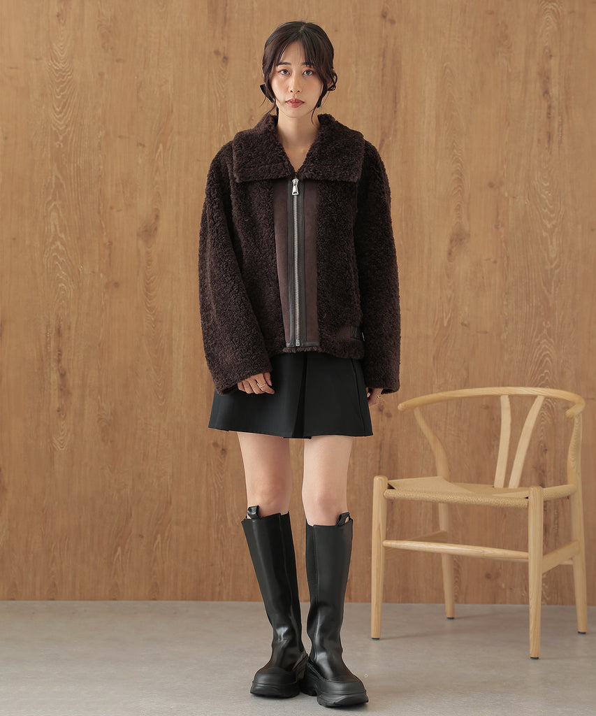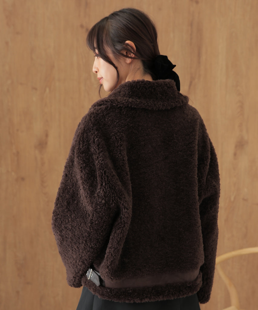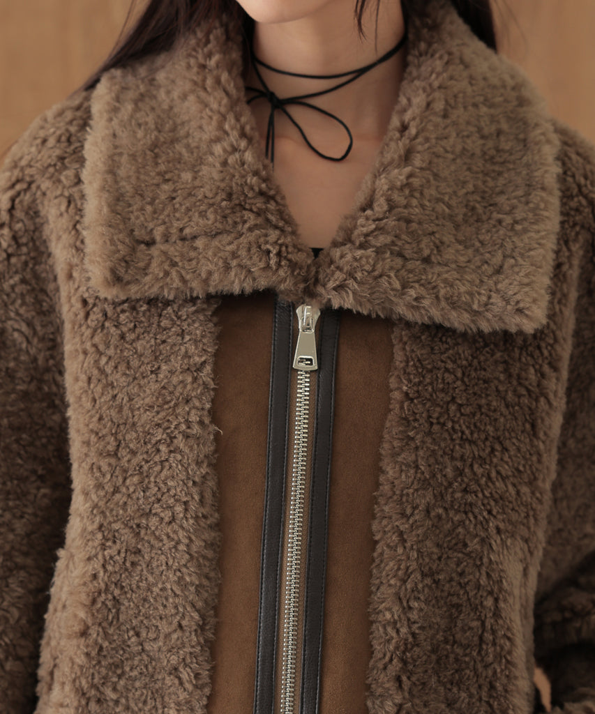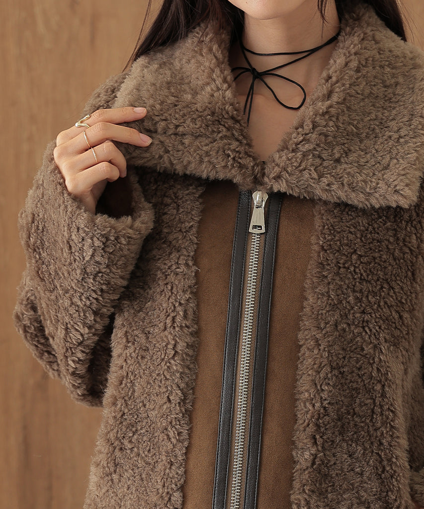 ウールボアを基調にしたふっくらウォーミィなショートコート。