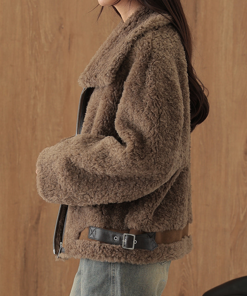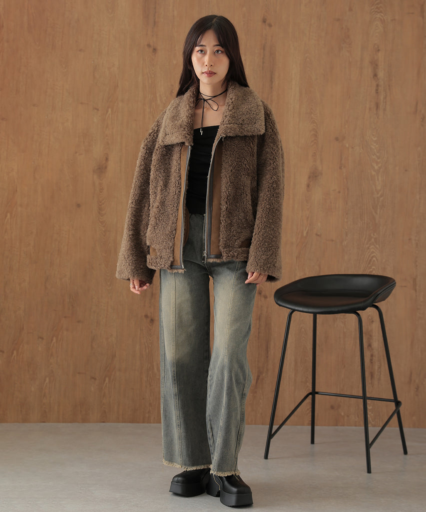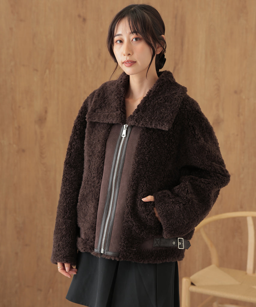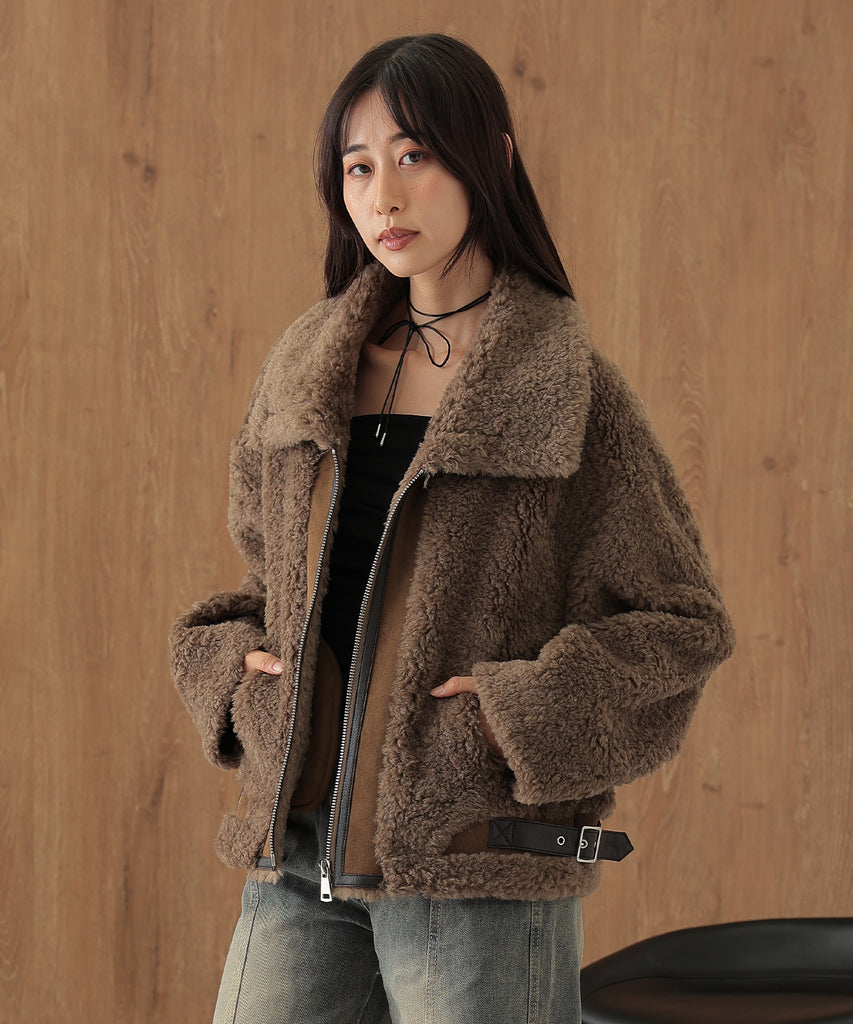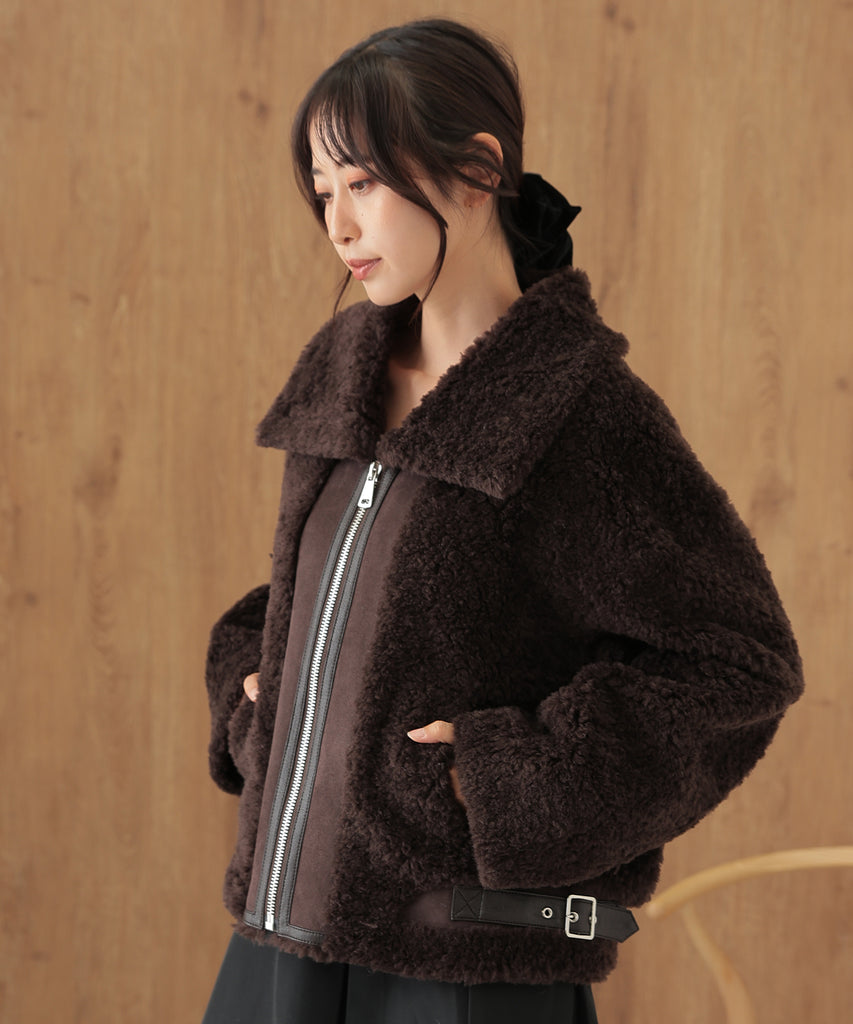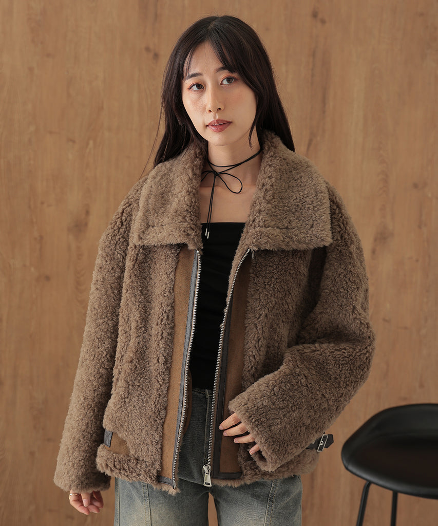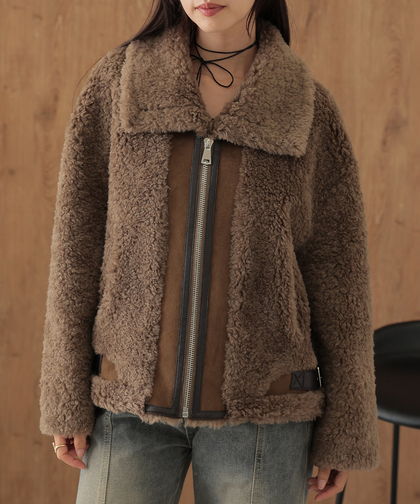 ウールボアを基調にしたふっくらウォーミィなショートコート。