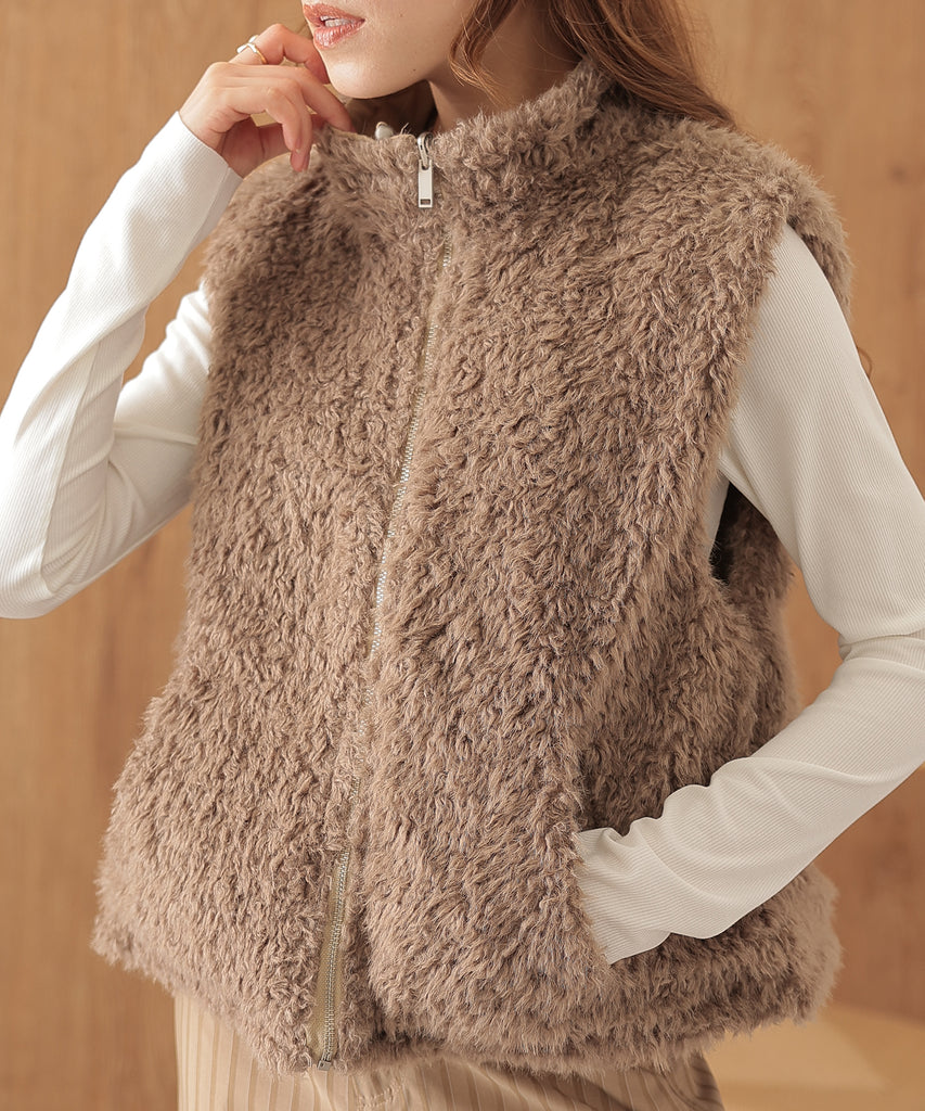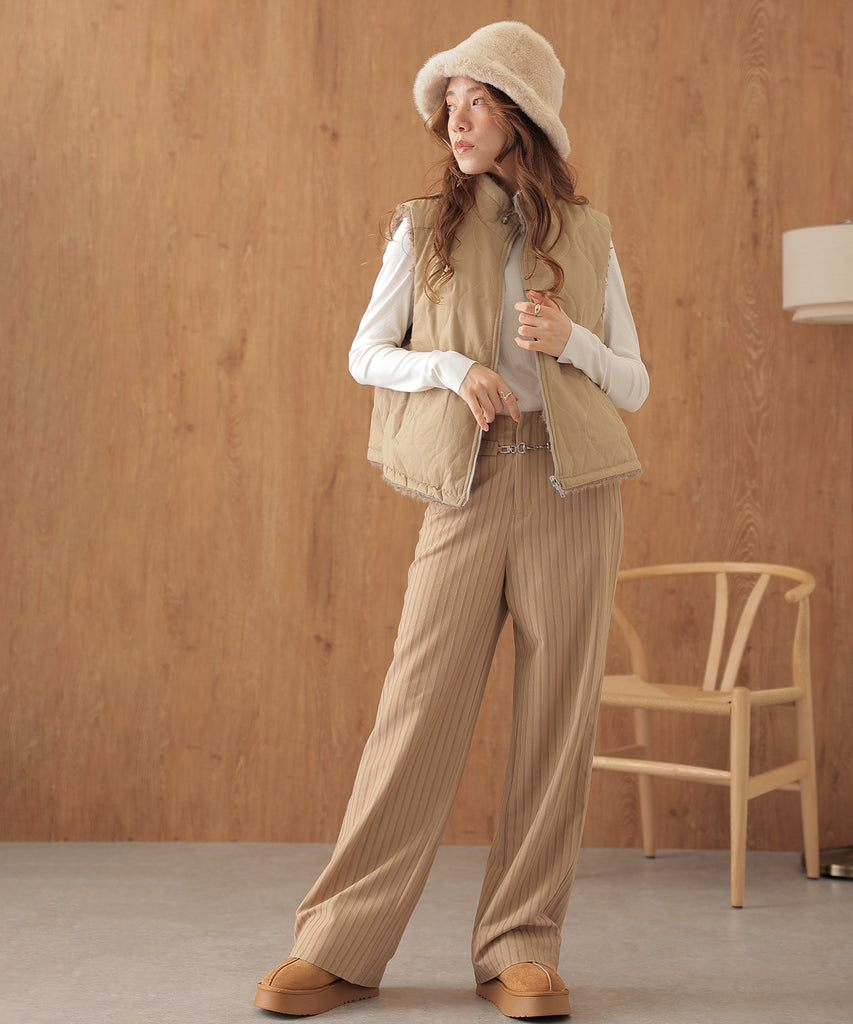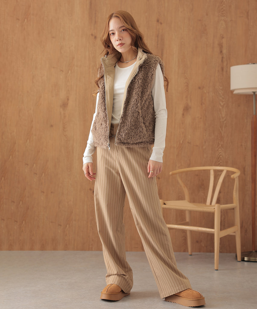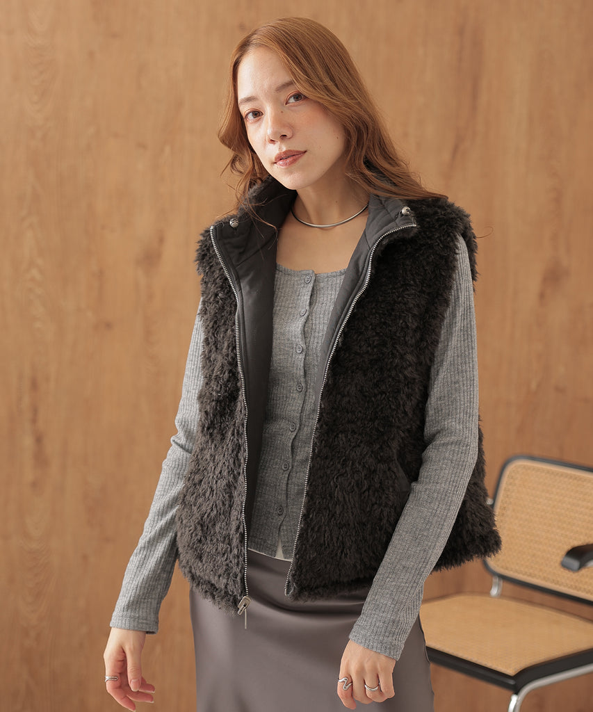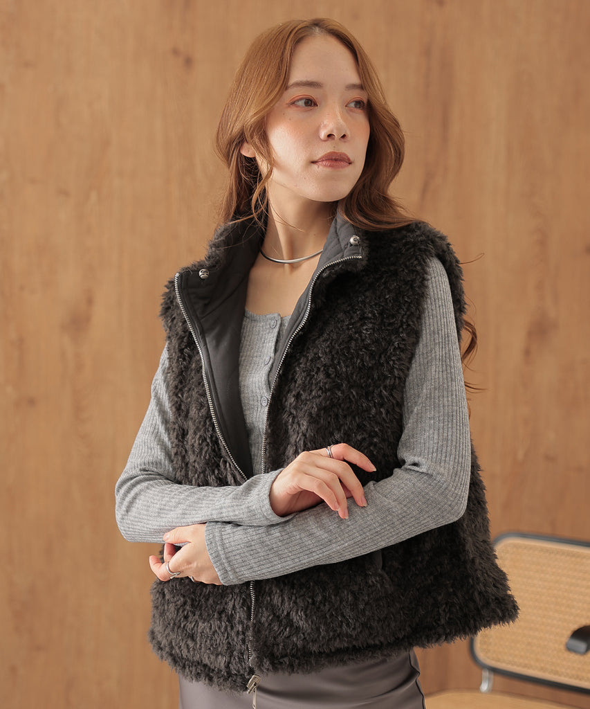 どちらを表にしても着用できる2way仕様のジップアップベスト。