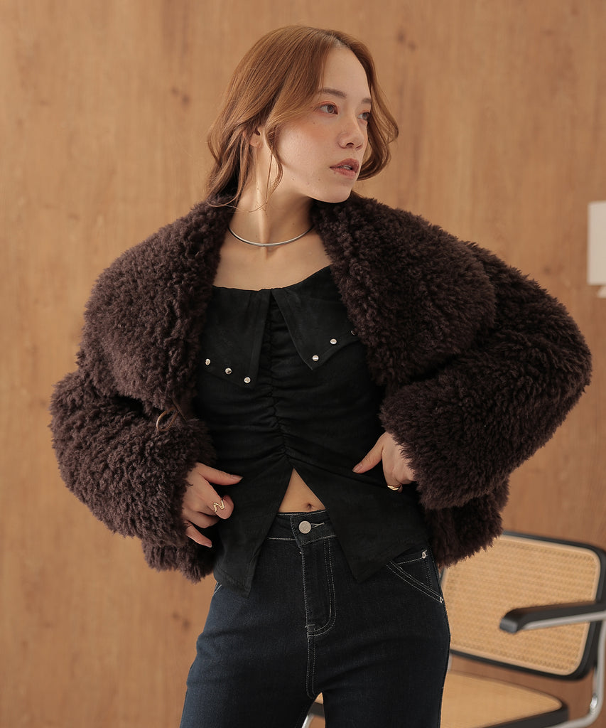 shirring slit hem rivet tops