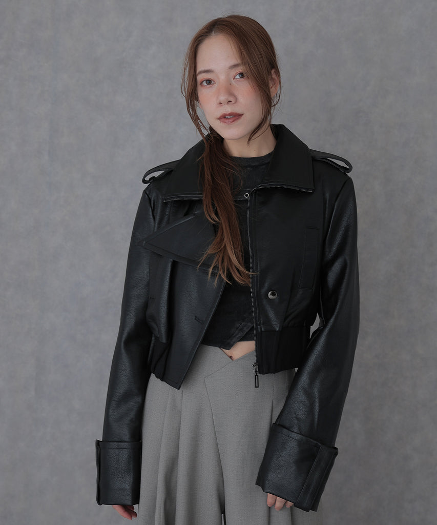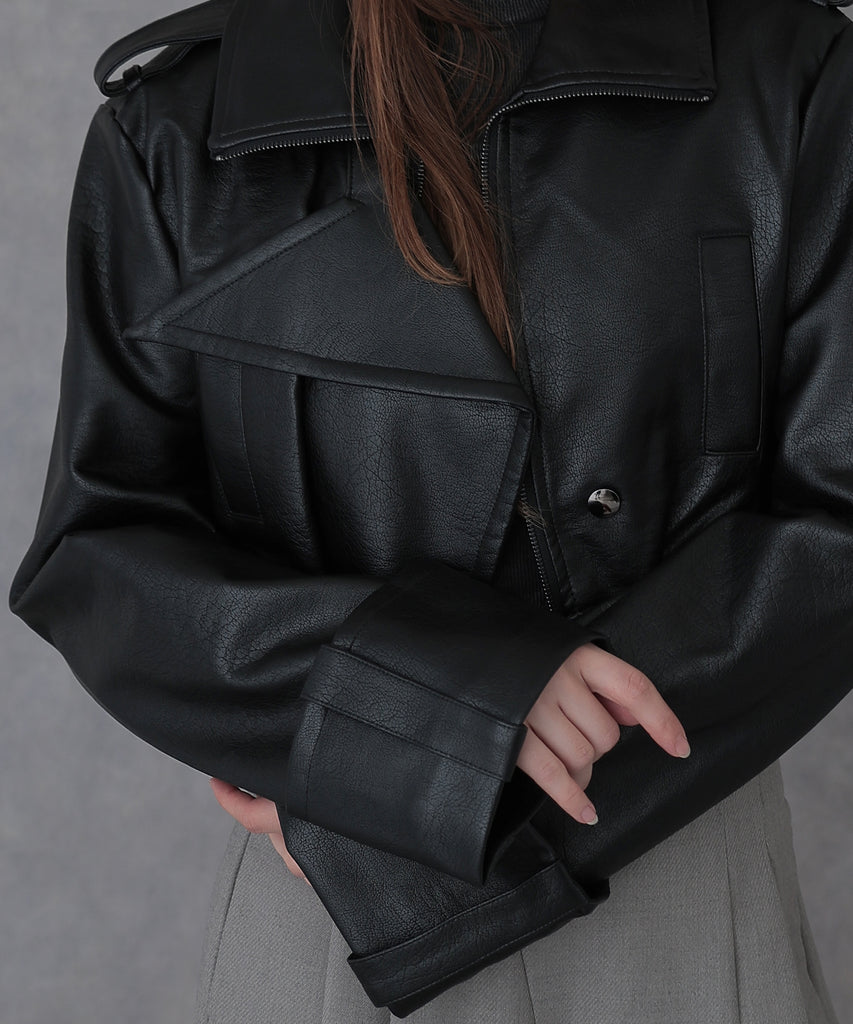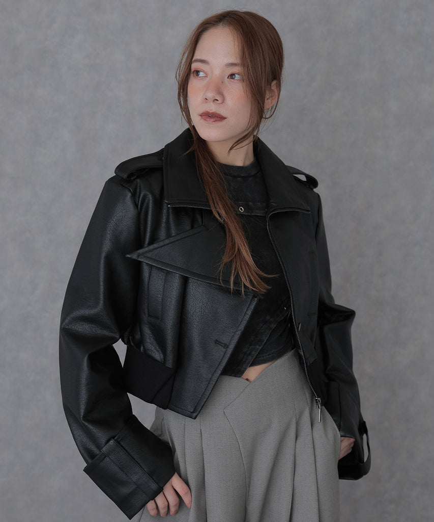 クールな雰囲気を纏ったレザータッチ素材のライダースジャケット
