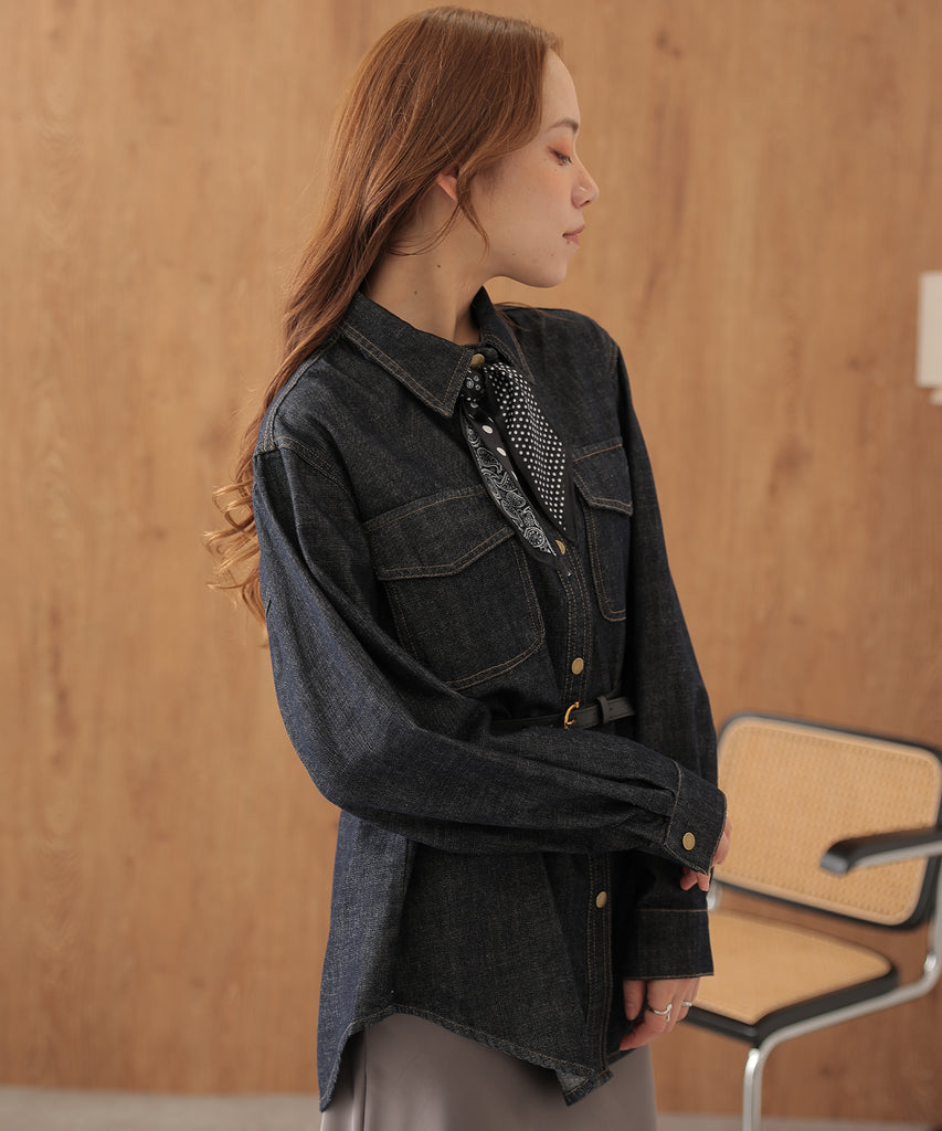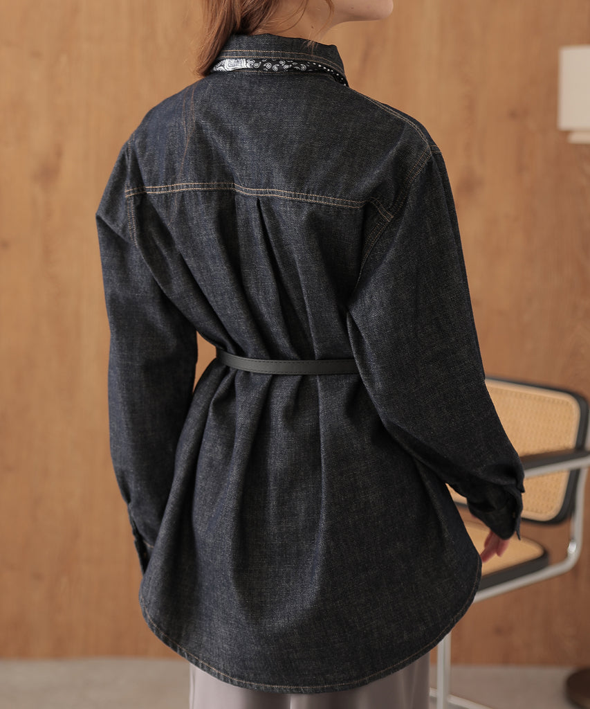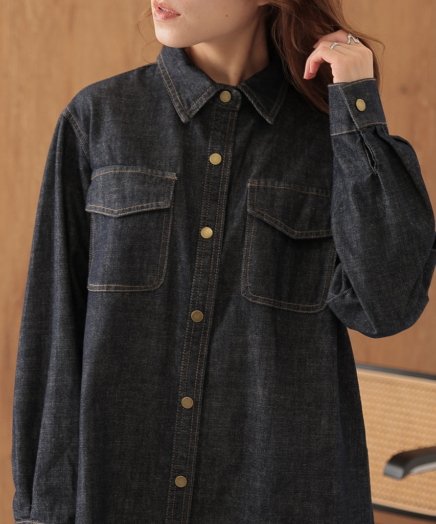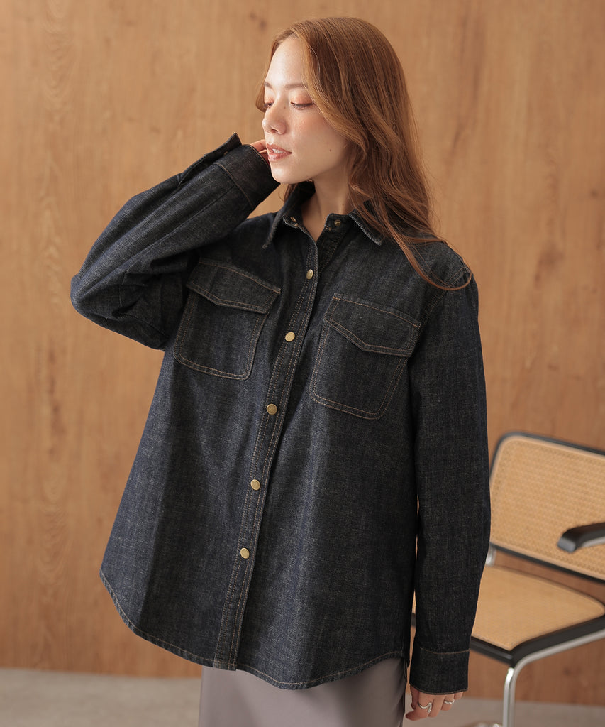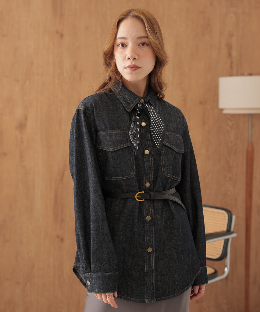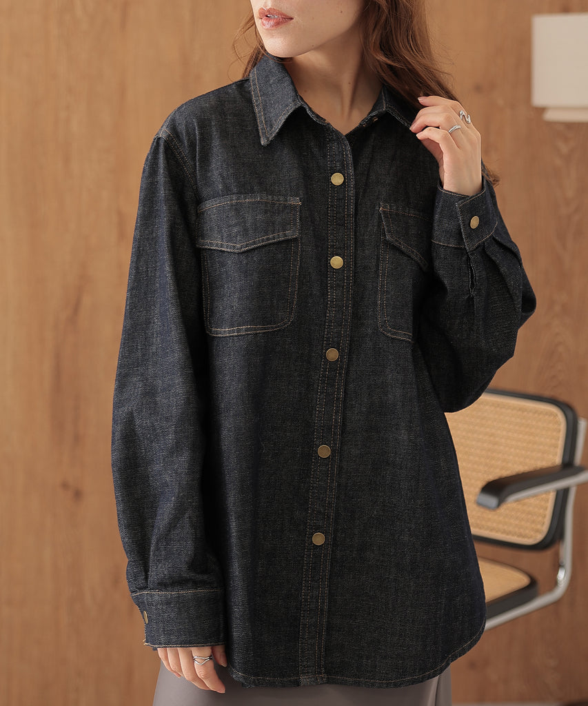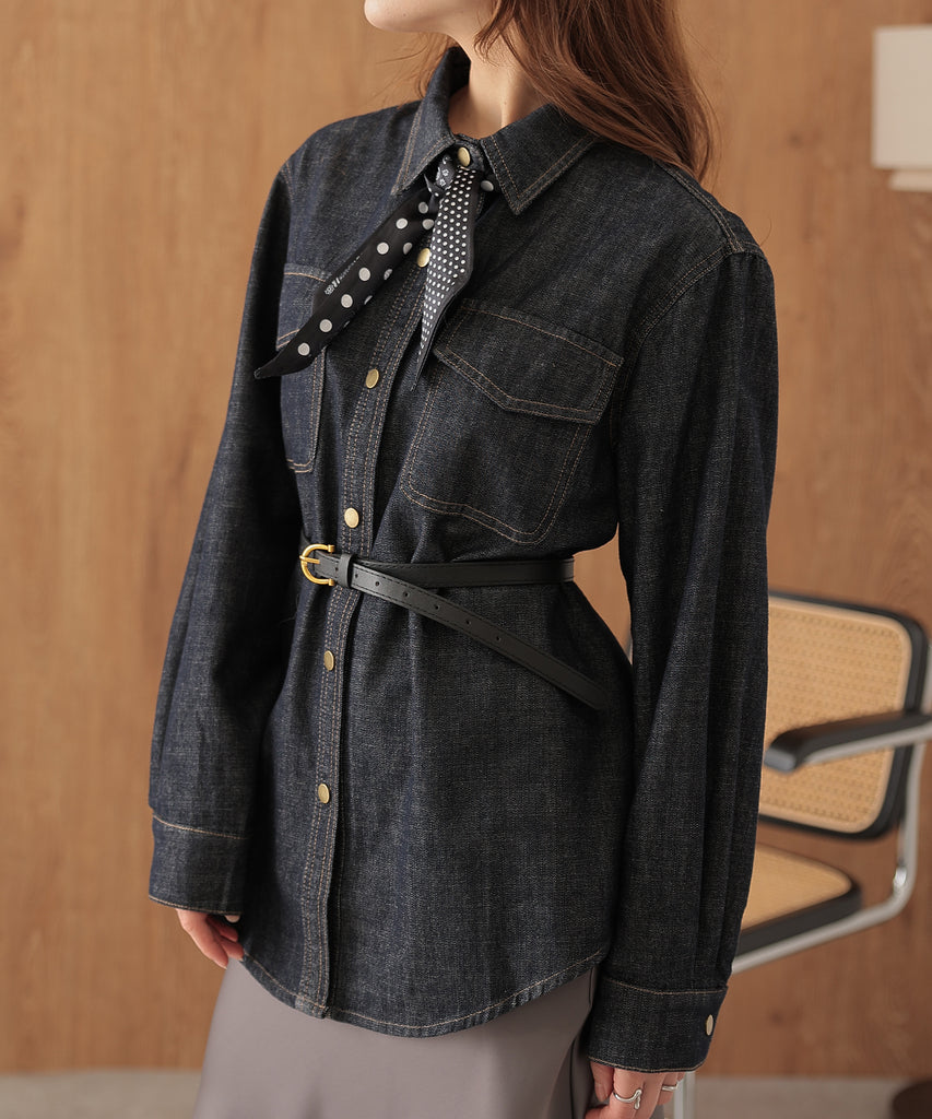 きちんと感を兼ね備えたレギュラーカラーのデニムシャツ。