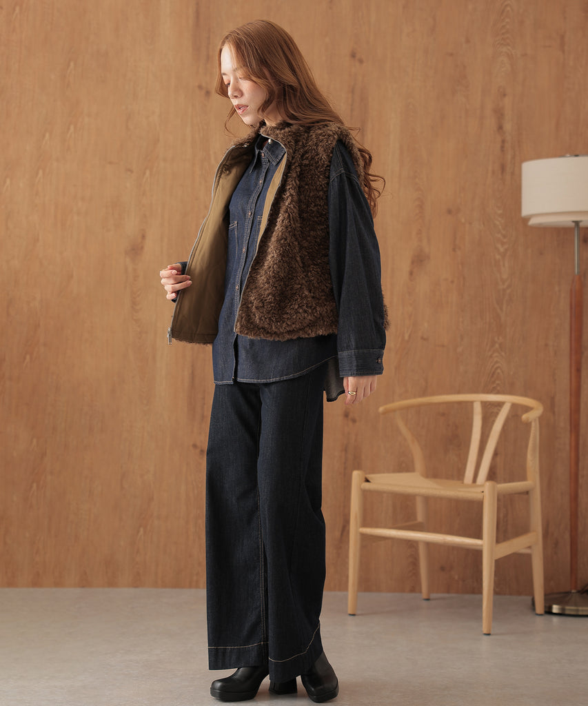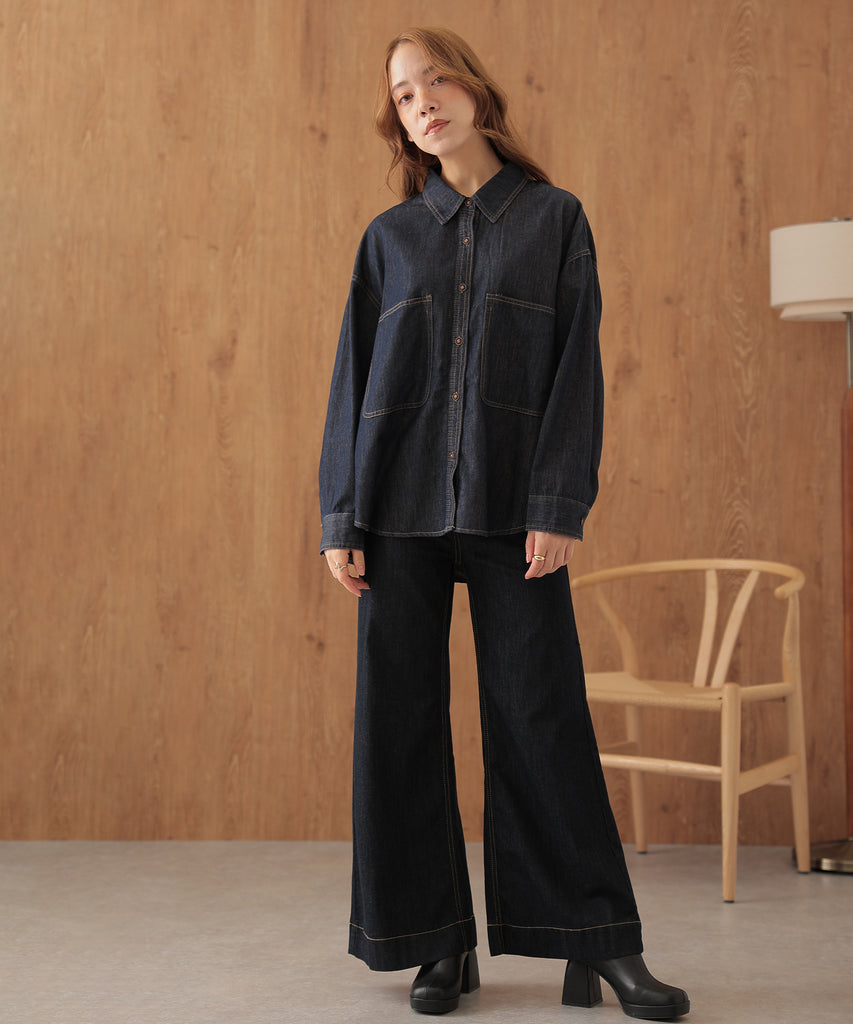 ゆったりとしたシルエットがこなれて見えるデニムシャツ。
