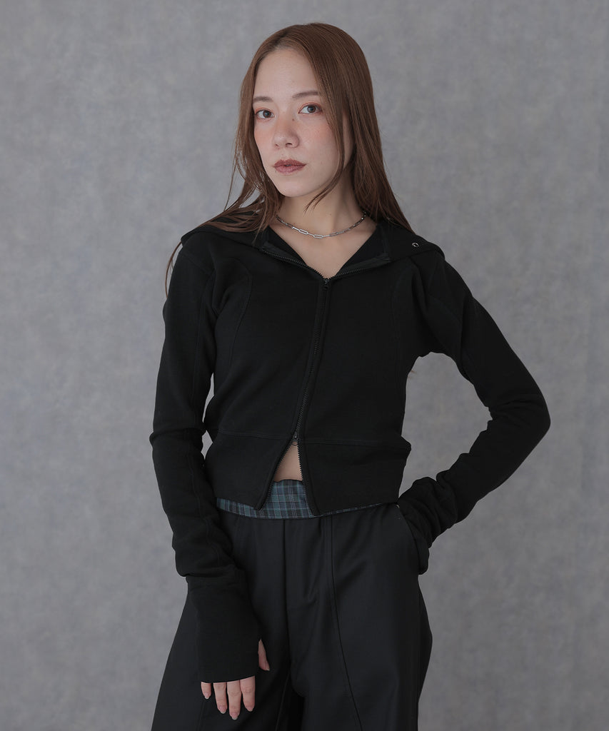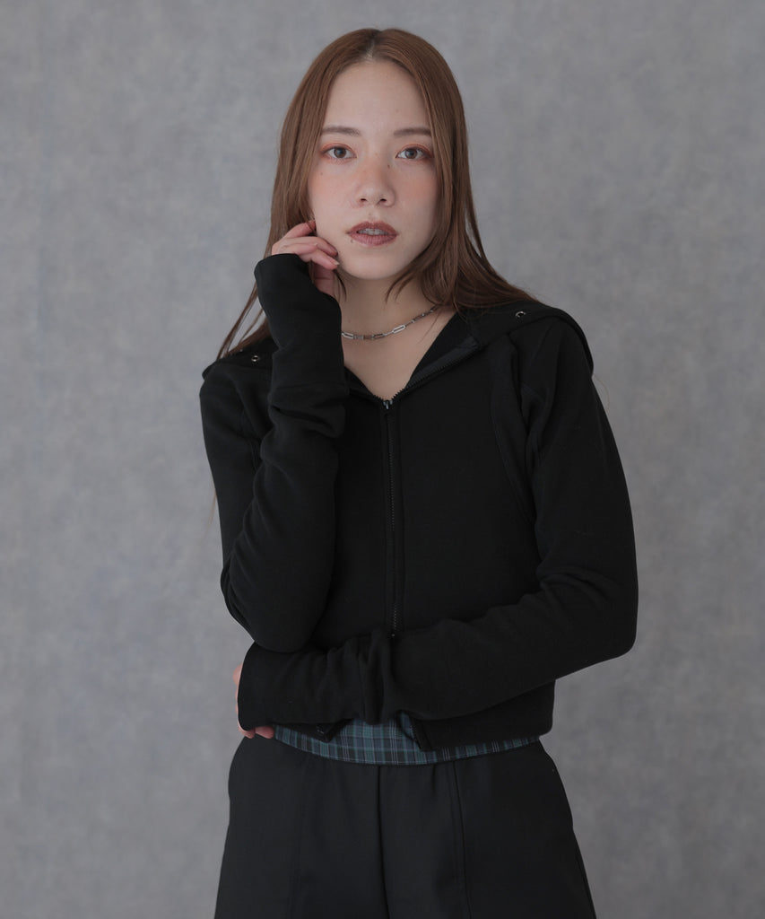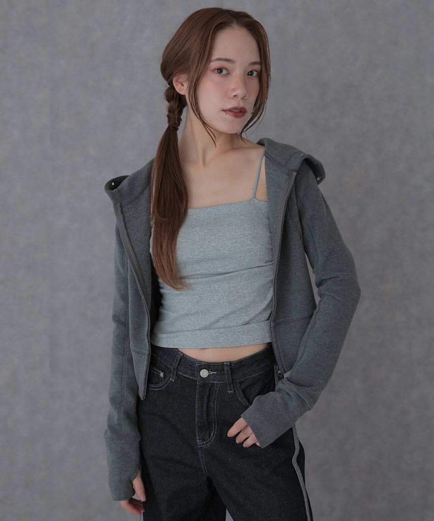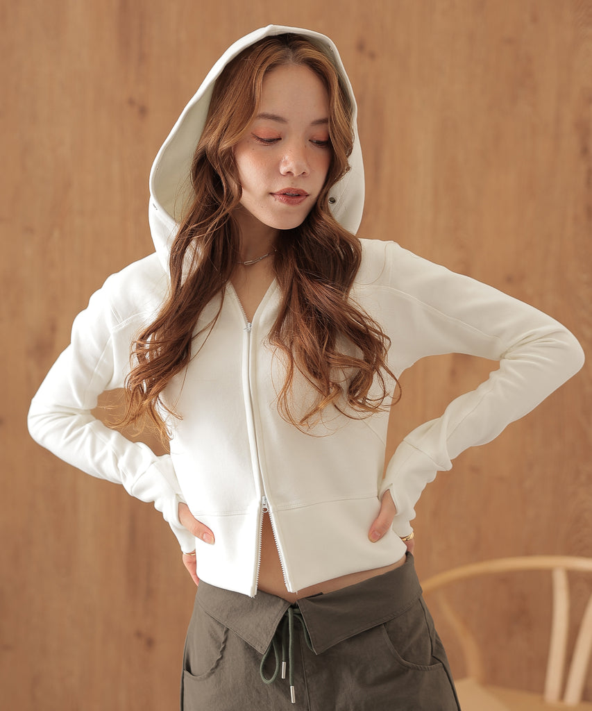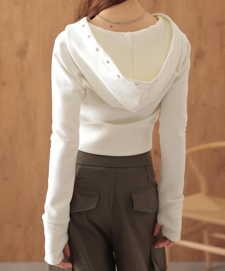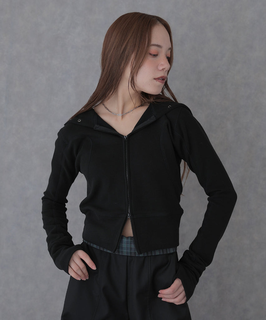 eyelet double zip hooded tops